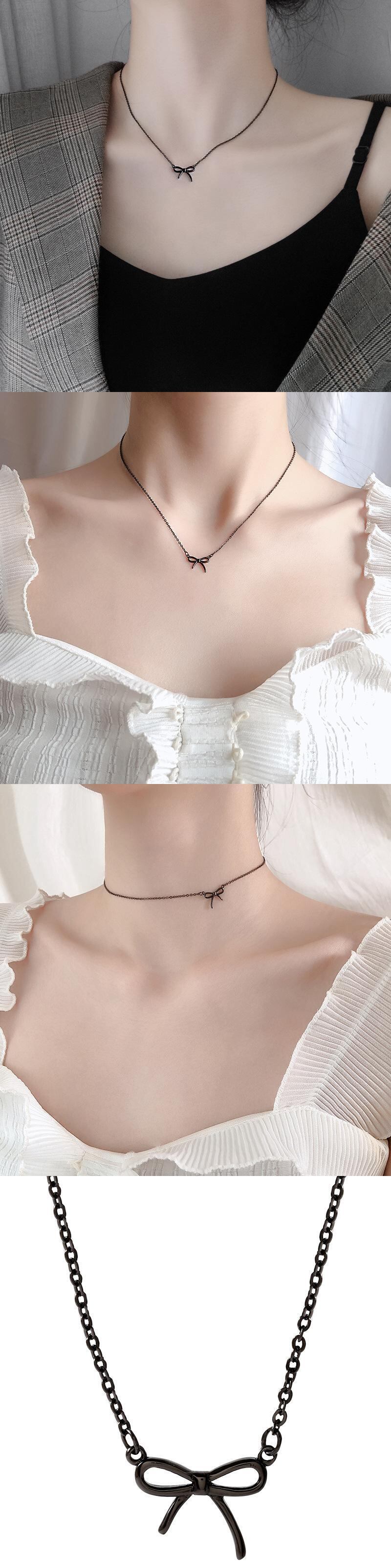 送料無料 ブラックプラネットスターペンダントチョーカーネックレスシンプルショートチェーンローズボウ鎖骨チェーンレディースジュエリーギフト リボン レース アクセサリー AE888834271380467
