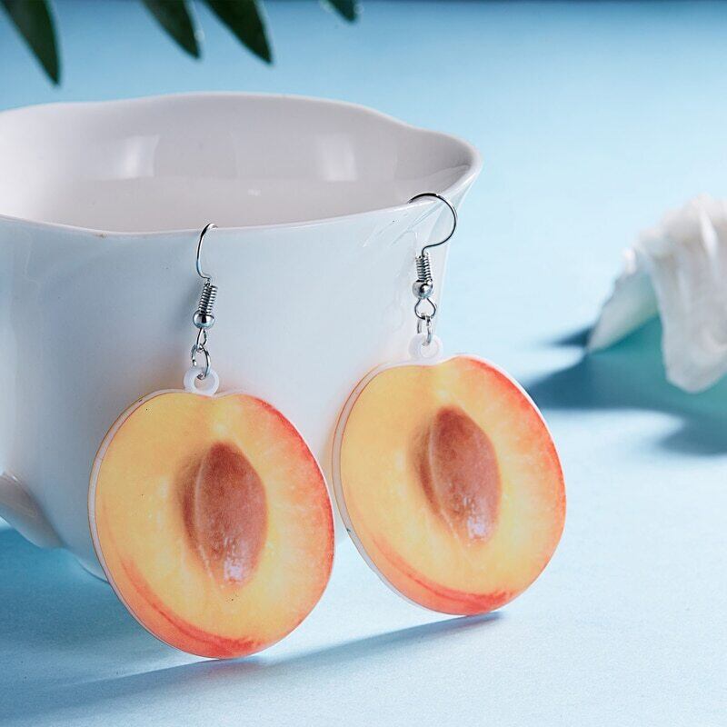送料無料 フルーツイヤリングフードダングルオレンジイヤリング女性アクリルピーチイヤリンググレープココナッツツリーマンゴーマスクメロンジュエリー 指輪 アクセサリー AE888867464605955