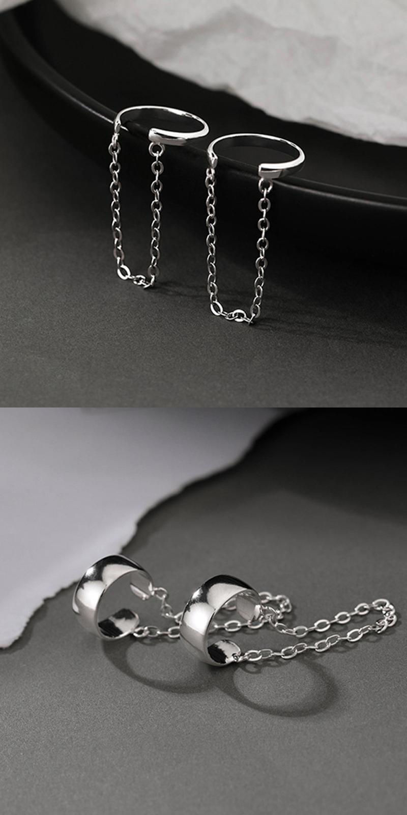 送料無料 パンクステンレススチールクリップイヤリング女性の耳カフピアスイヤリングチェーン耳クリップストリートダンスパーティージュエリー 指輪 アクセサリー AE888879627166709