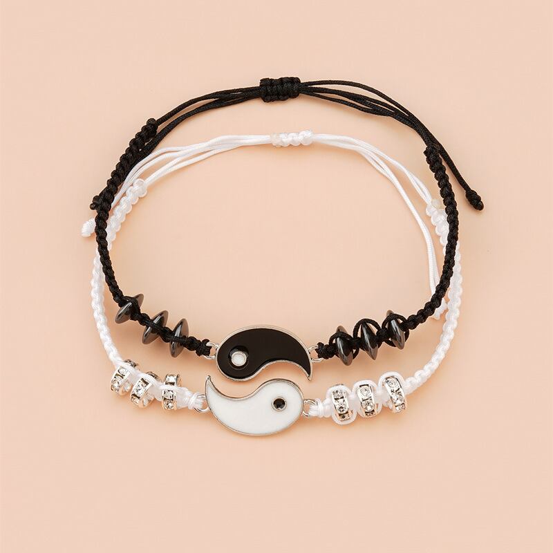 送料無料 2 PCS / Set Tai ChiYinYangカップルブレスレットBestFriendsHandmade Adjustable Braid Braided Rope Friendship Jewelry Gifts アジャスタブル アクセサリー AE888849247191626