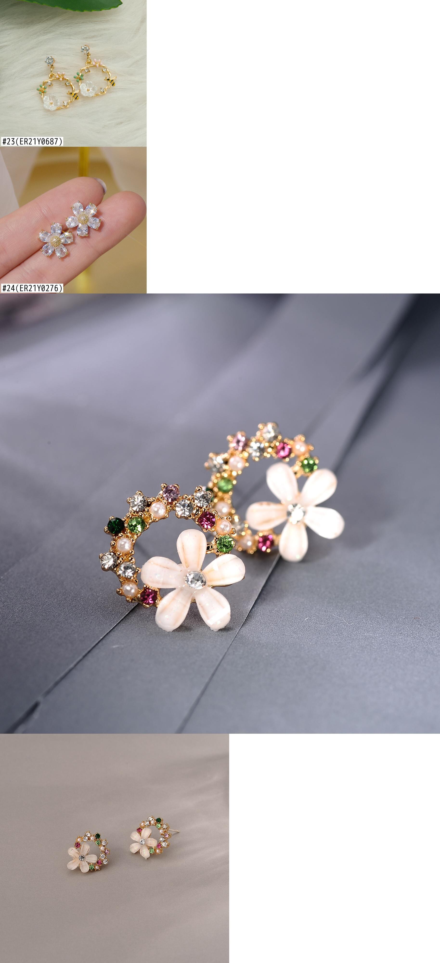 送料無料 スタイルスウィートクリスタルフラワーピアス女性の魅力カラフルなガーランドスタッドピアスガールズジュエリー イヤリング 大人ガーリー キュート カジュアル リング 指輪 フラワーデザイン アクセサリー AE888862108908885
