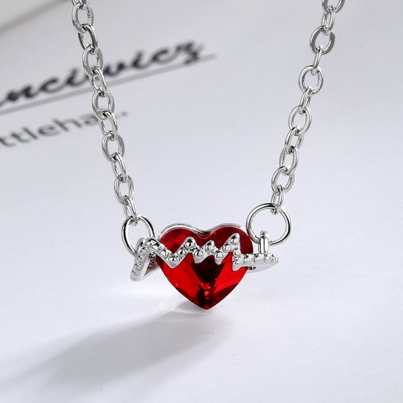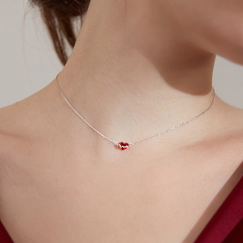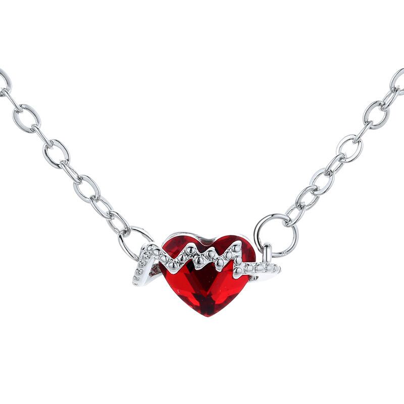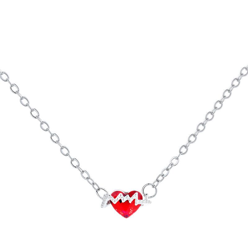 送料無料 レッドラブハート鎖骨チェーンネックレス女性気質ハートビートECGペンダントネックレスガールズパーティーウェディングジュエリーギフト レース アクセサリー AE888896979496840