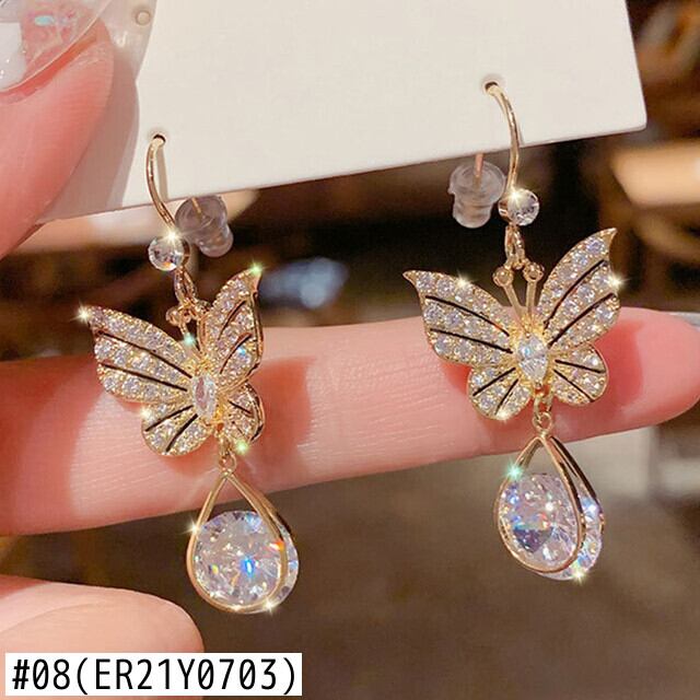 送料無料 スタイルライトラグジュアリーイミテーションパールバタフライイヤリング女性ゴールデンジルコンアニマルスタッドピアスガールズパーティージュエリー 真珠 指輪 アクセサリー AE888861792893560