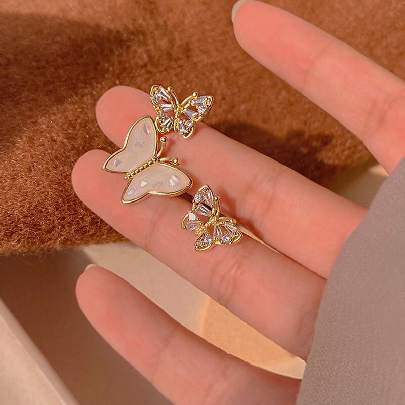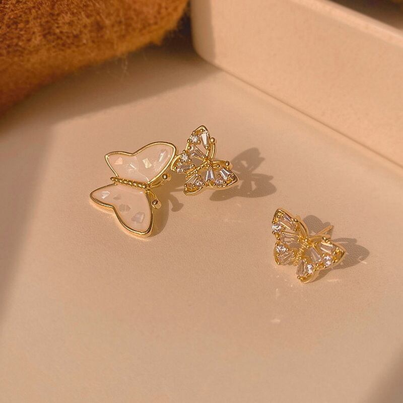 送料無料 非対称バタフライスタッドピアス女性スタイルクリスタルジルコンピアスガールズパーティージュエリーギフト イヤリング リング 指輪 アクセサリー AE888830391427452