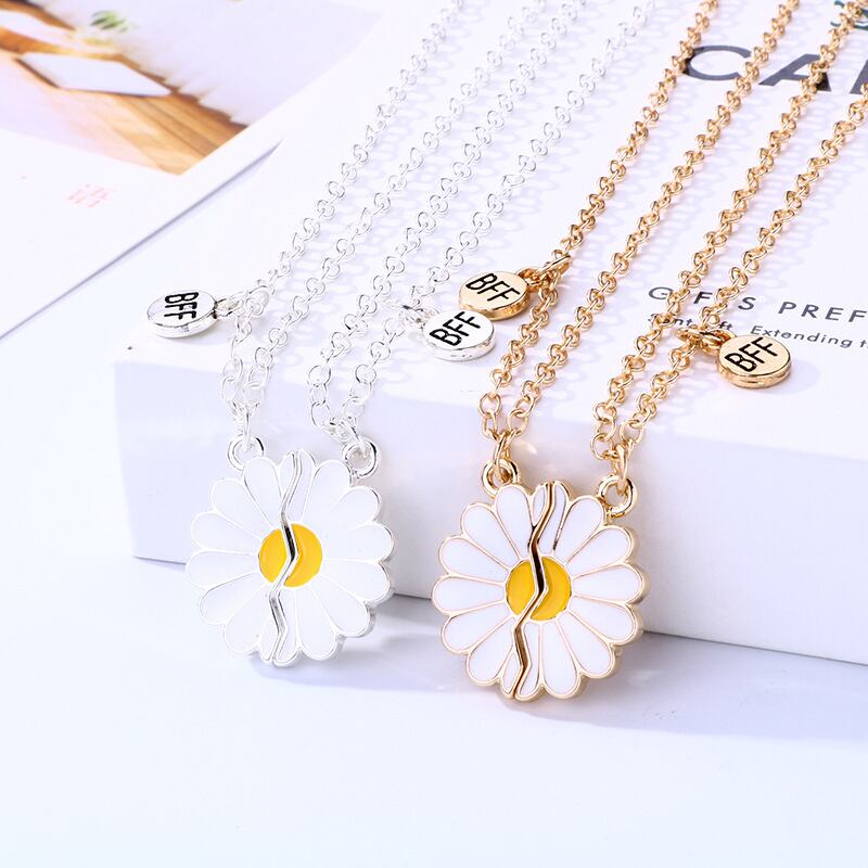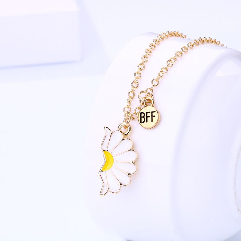 送料無料 2個のBFFネックレス女性壊れたデイジーペンダント親友ネックレスカップル友情ジュエリー記念日ギフト レース アクセサリー AE888856357867543
