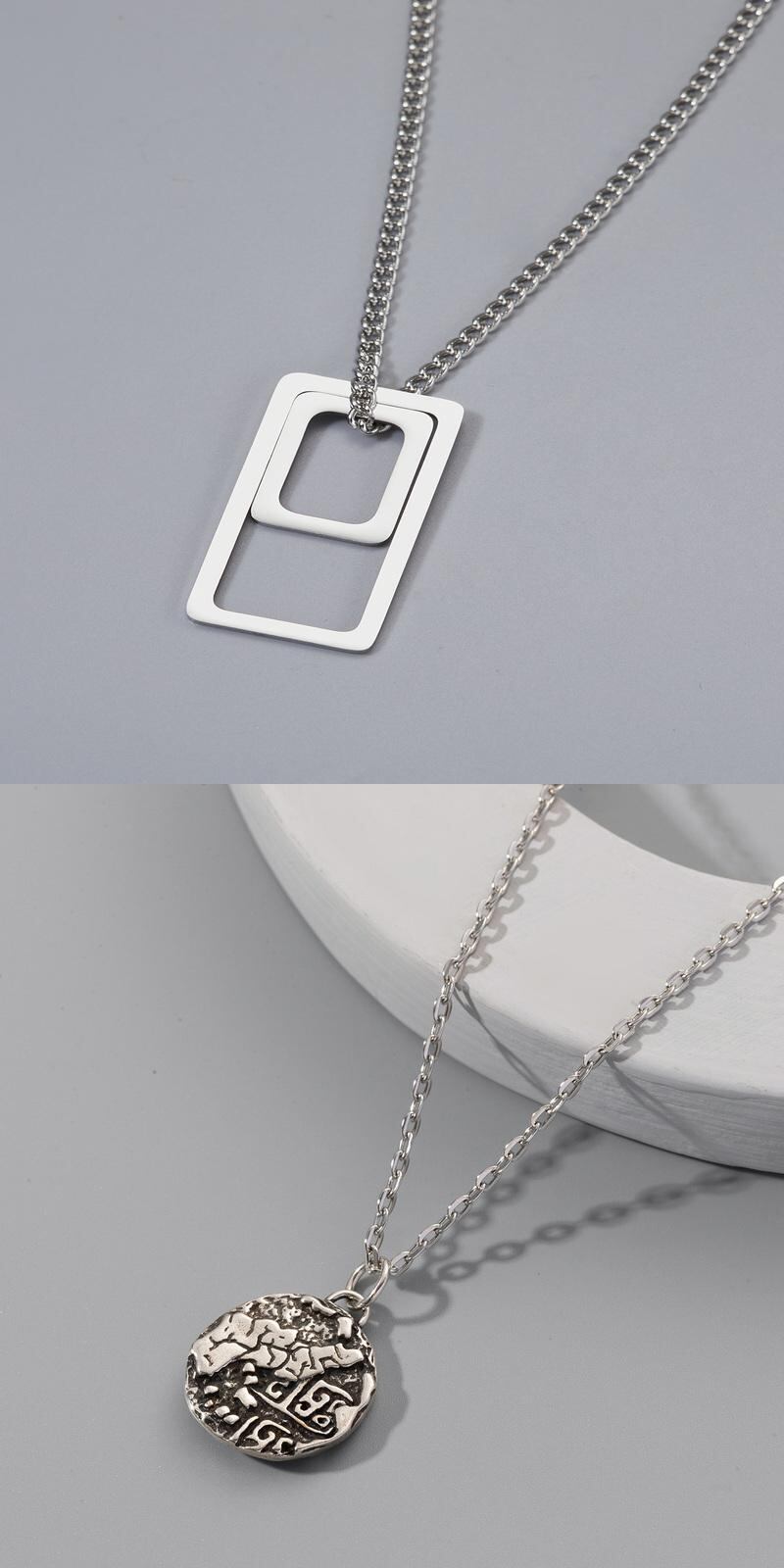 送料無料 シンプルリンクチェーンネックレスメンズチャームグリーンクリスタルペンダントネックレス幾何学的中空スクエアラウンドカラーチェーンジュエリー レース スクウェア アクセサリー AE888871554429907