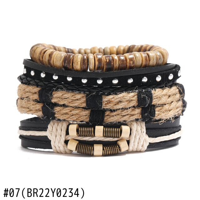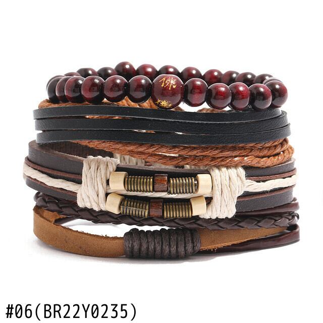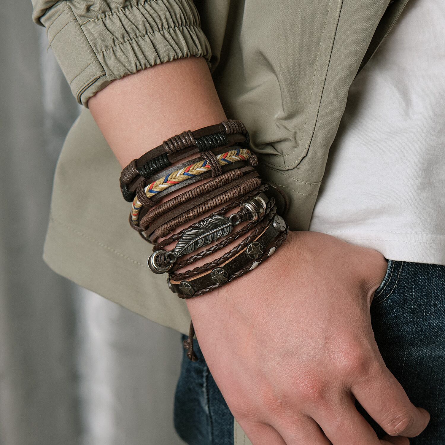 送料無料 ヴィンテージ編みこみラップレザーブレスレットメンズパンク多層手作りフェザーウッドビーズロープブレスレット男性リストバンドジュエリー マルチレイヤー ビンテージ アクセサリー AE888852867130255