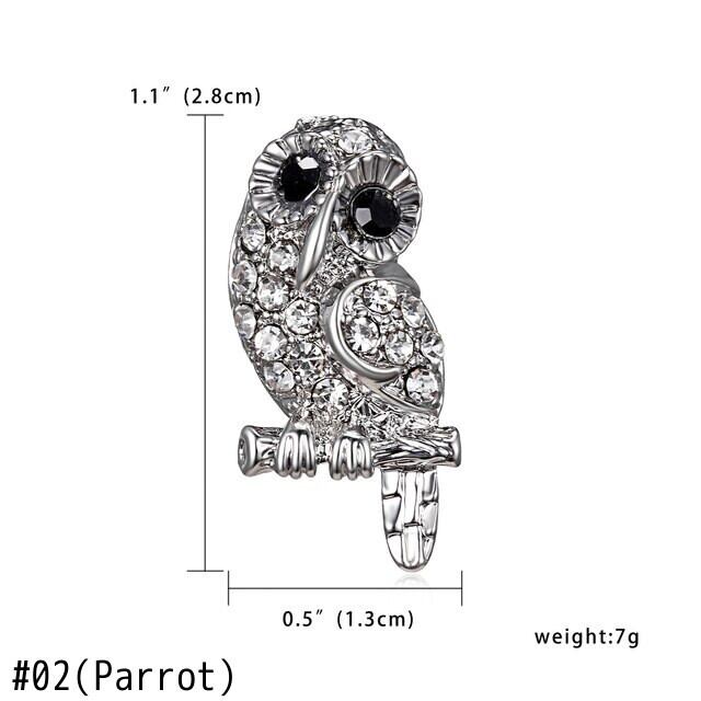 送料無料 リンフーアニマルオウムフクロウリザードクリスタルラインストーンブローチ女性気質ピンウェディング花嫁ジュエリー アクセサリー AE888817341526577