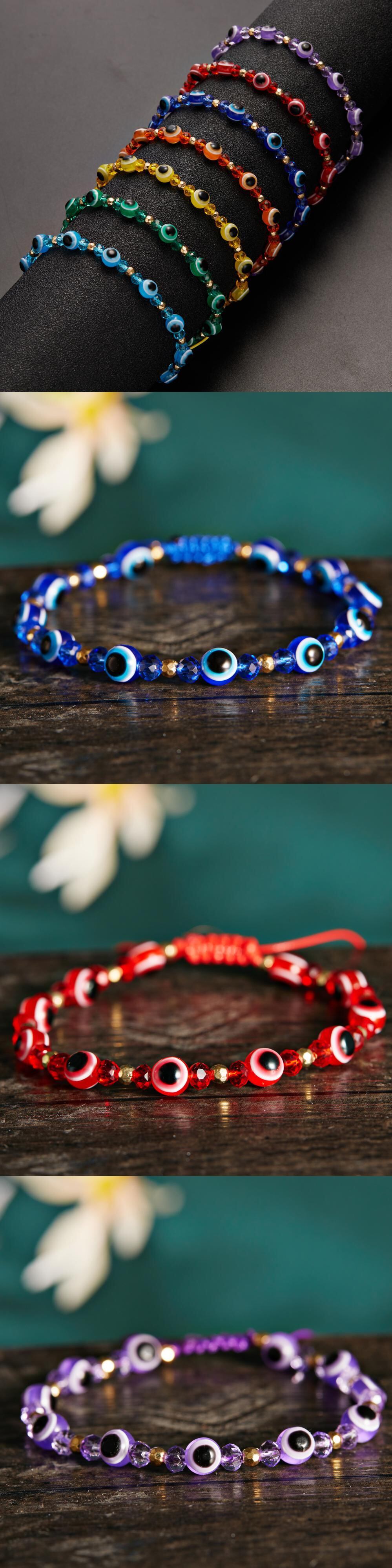 送料無料 手作りマルチカラーイービルアイチャームブレスレット女性男性ラッキーアジャスタブル編組ロープブレスレット友情ジュエリー アクセサリー AE888811006008065