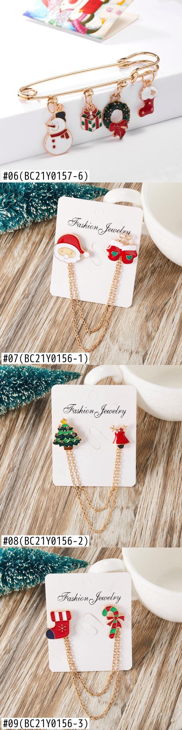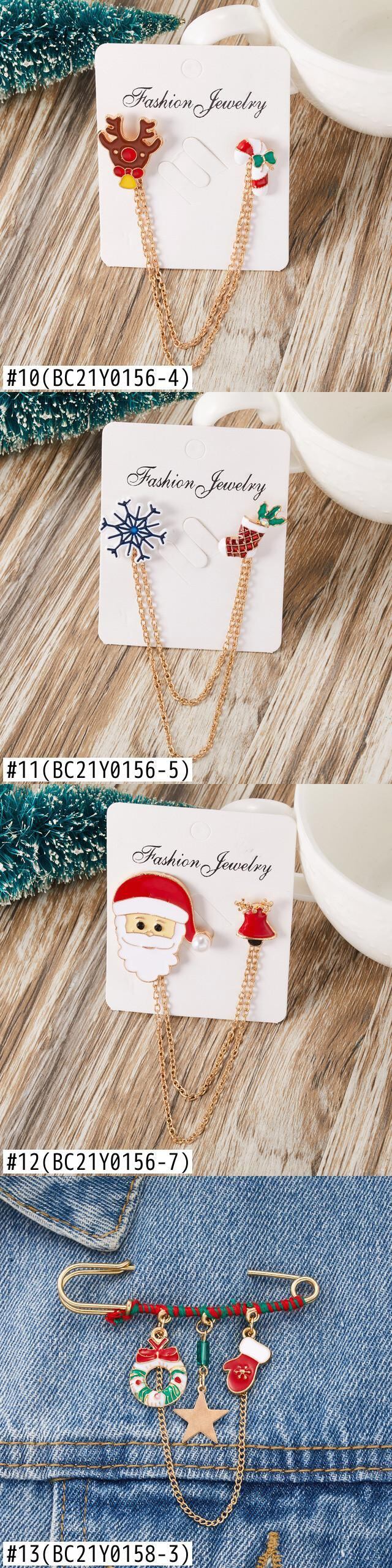 送料無料 クリスマスブローチサンタクロース雪だるまスノーフレークチェーンテルピン女性エルククリスマスツリーグローブネドルピンジュエリー アクセサリー AE888888461436572