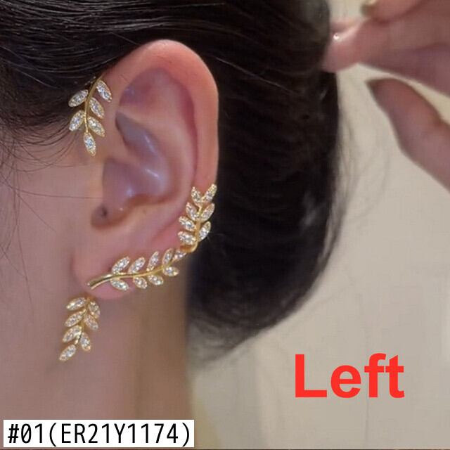 送料無料 スパークリングクリスタルリーフピアススタッドピアス女性ジルコンの葉耳カフ耳クリップガールパーティージュエリーギフト イヤリング アクセサリー AE888831337080922