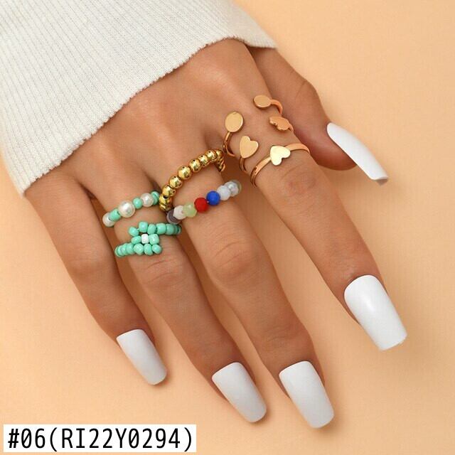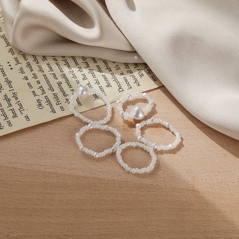 送料無料 夏のシミュレートされたパールビーズヴィンテージリングセットカラフルなボヘミア手作りビーズライスビーズリングガールズビーチジュエリーギフト サマー 夏物 指輪 真珠 人工 ビンテージ アクセサリー AE888869709069537