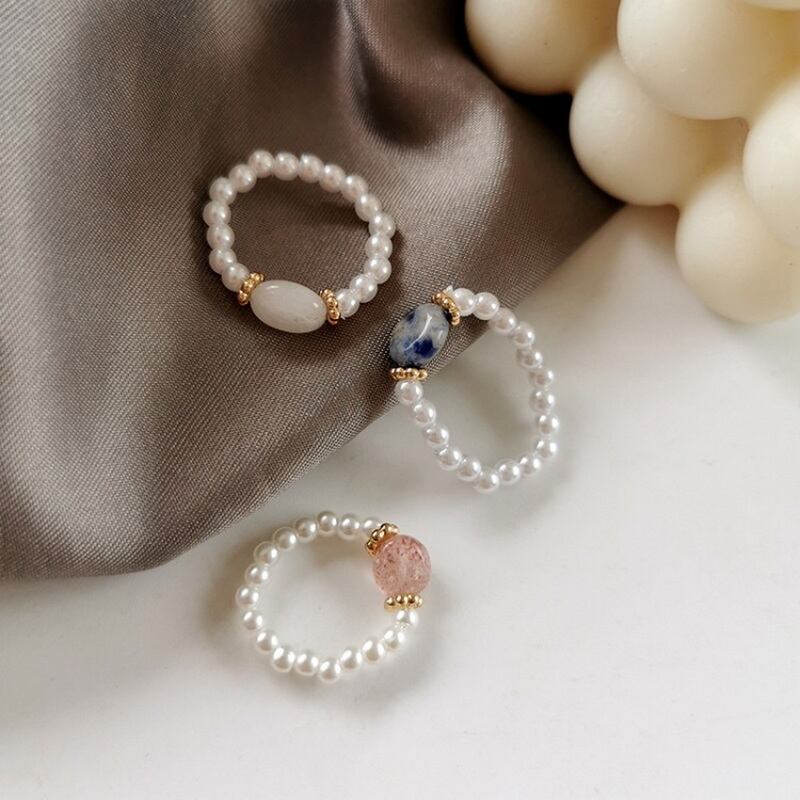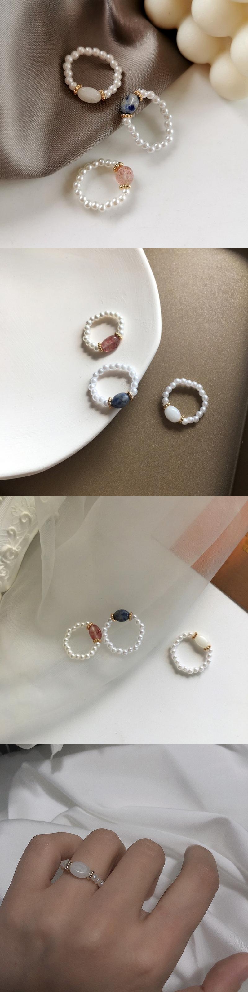 送料無料 1PCレディースリングサマーイミテーションパールビーズリングレディースジュエリー気質アクセサリースウィートエステティックギフト 大人ガーリー キュート カジュアル 夏物 指輪 真珠 アクセサリー AE888897845793974