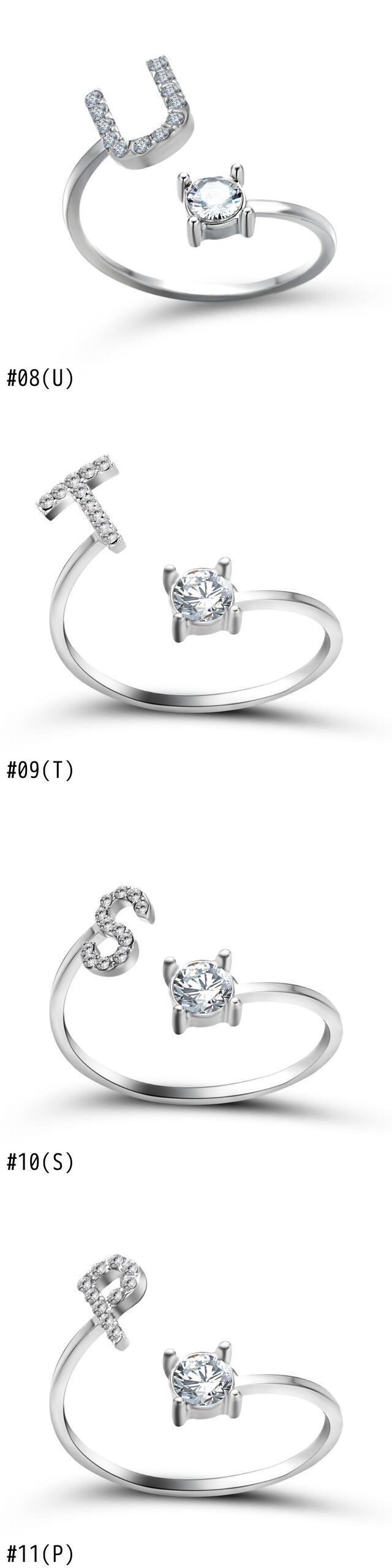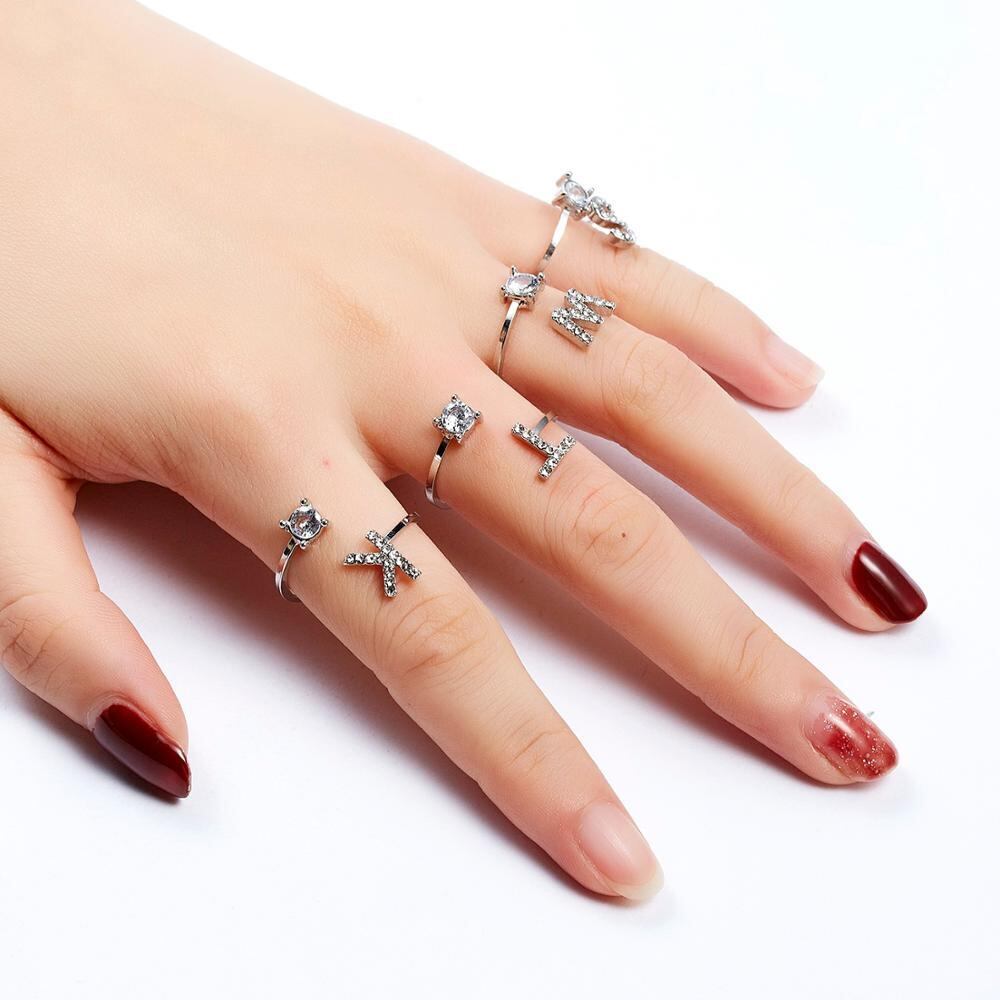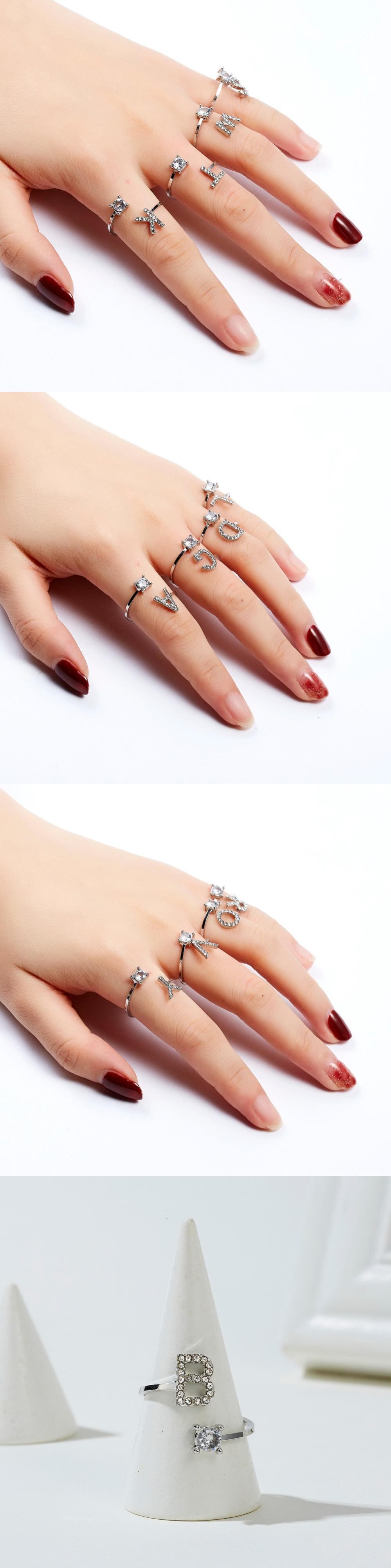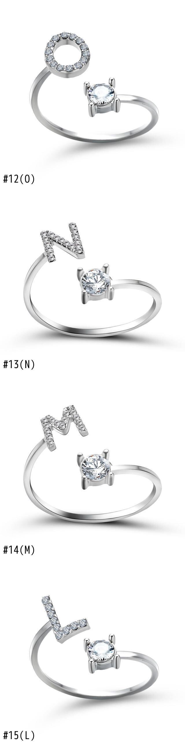送料無料 26文字不規則な調整可能なオープニングシルバーカラー合金リングラインストーンクリスタルリング女性の装飾ギフト アジャスタブル 指輪 銀 アクセサリー AE888810884127626