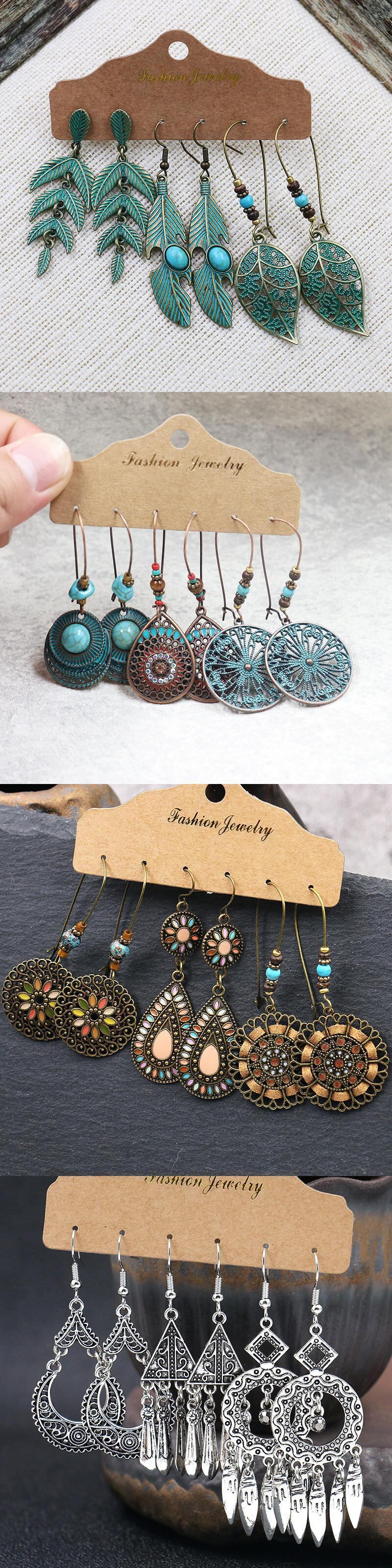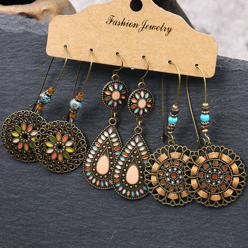 送料無料 自由奔放に生きるエスニックダングル/ラウンドイヤリング女性ヴィンテージイヤリングセットボヘミアンテル幾何学ジュエリーアクセサリー 指輪 ビンテージ アクセサリー AE888825051271267