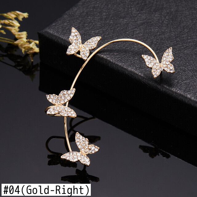 送料無料 ゴールドシルバーカラーラインストーンバタフライクリップイヤリング女性シャイニングジルコンフェイクピアスピアスイヤリングカフジュエリー 指輪 銀 アクセサリー AE888851108112441