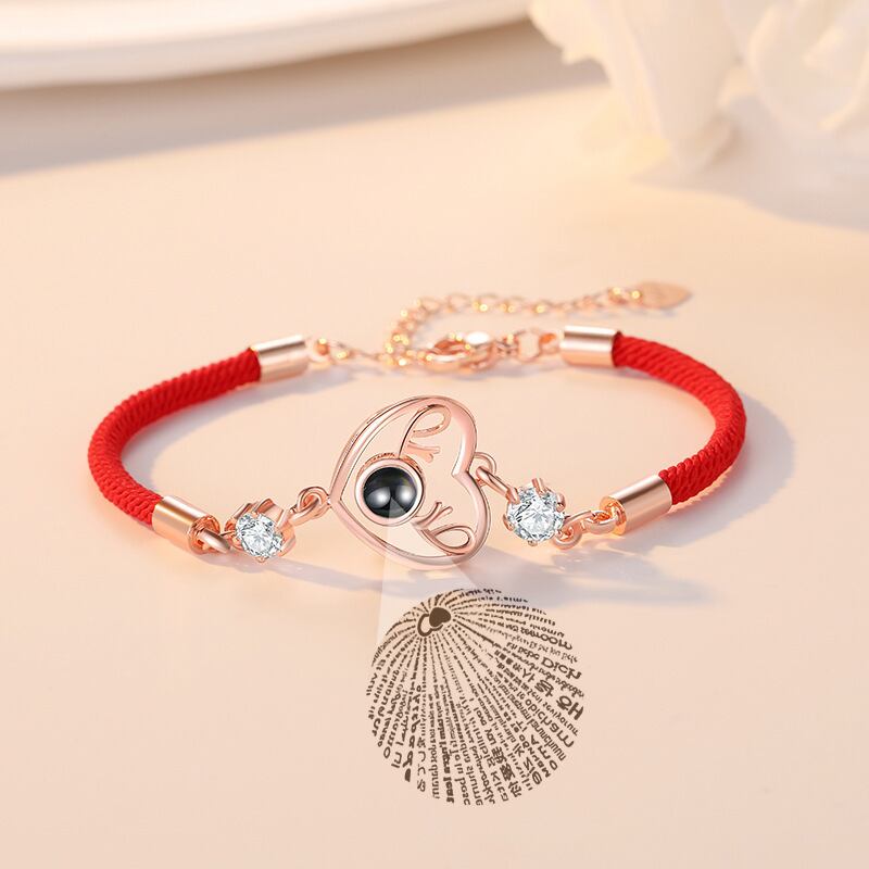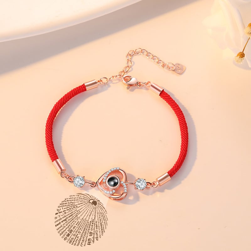 送料無料 ロマンチックな100の言語私はあなたを愛していますプロジェクションブレスレット女性ラッキーレッドチャームアイハートペンダントブレスレットアニバーサリージュエリー アクセサリー AE888839666749258