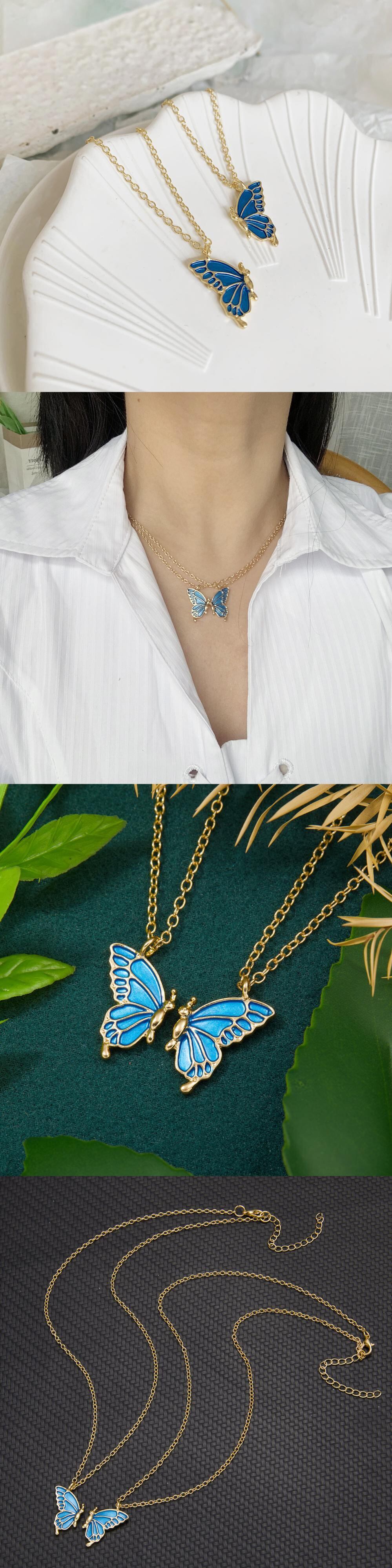 送料無料 2個/セットヴィンテージバタフライネックレス女性の女の子かわいい対称ペンダント友情鎖骨チェーンネックレス2ジュエリーギフト レース 大人ガーリー スウィート キュート カジュアル ビンテージ アクセサリー AE888866138139136