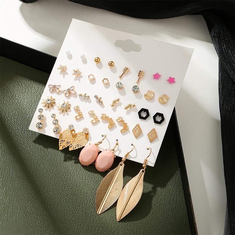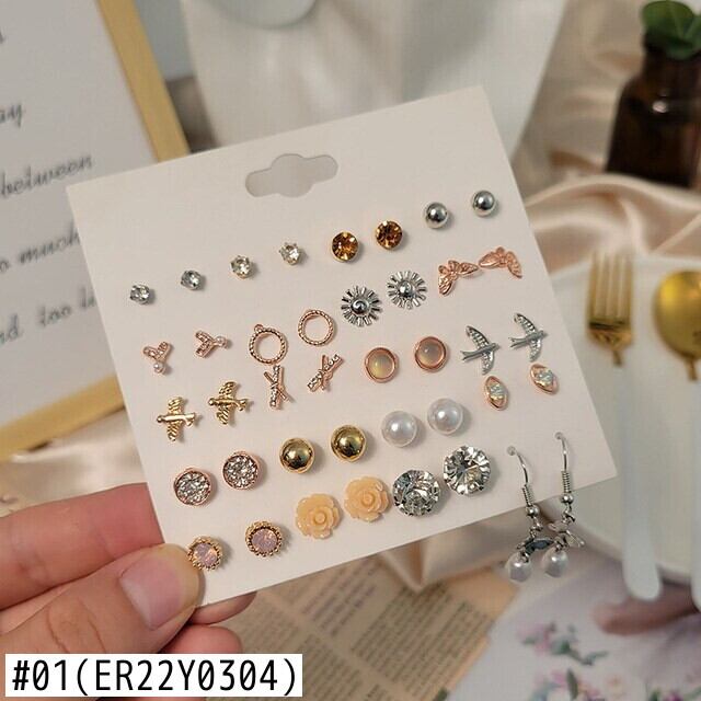 送料無料 16/20ペアランダムイヤリングミックススタイルラインストーンスターフラワー幾何学動物メタルスタッドピアスセットレディースジュエリー 指輪 フラワーデザイン アクセサリー AE888899900031597