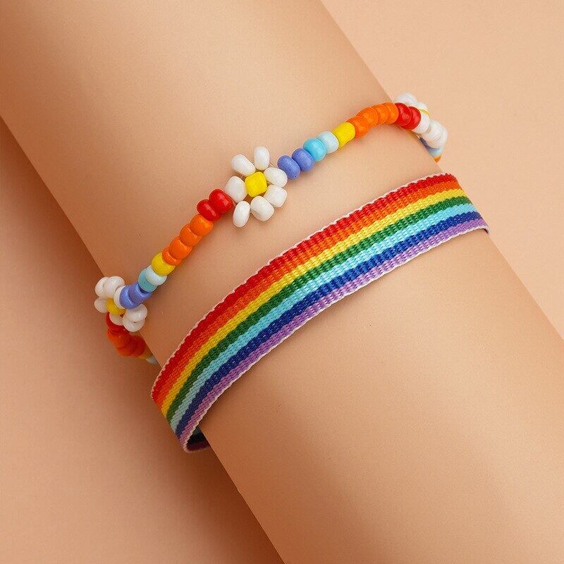 送料無料 チャームLGBTレインボービーズブレスレットセット手作りカップルプライドゲイ女性男性ビーズブレスレット友情恋人ジュエリーギフト アクセサリー AE888893898868239