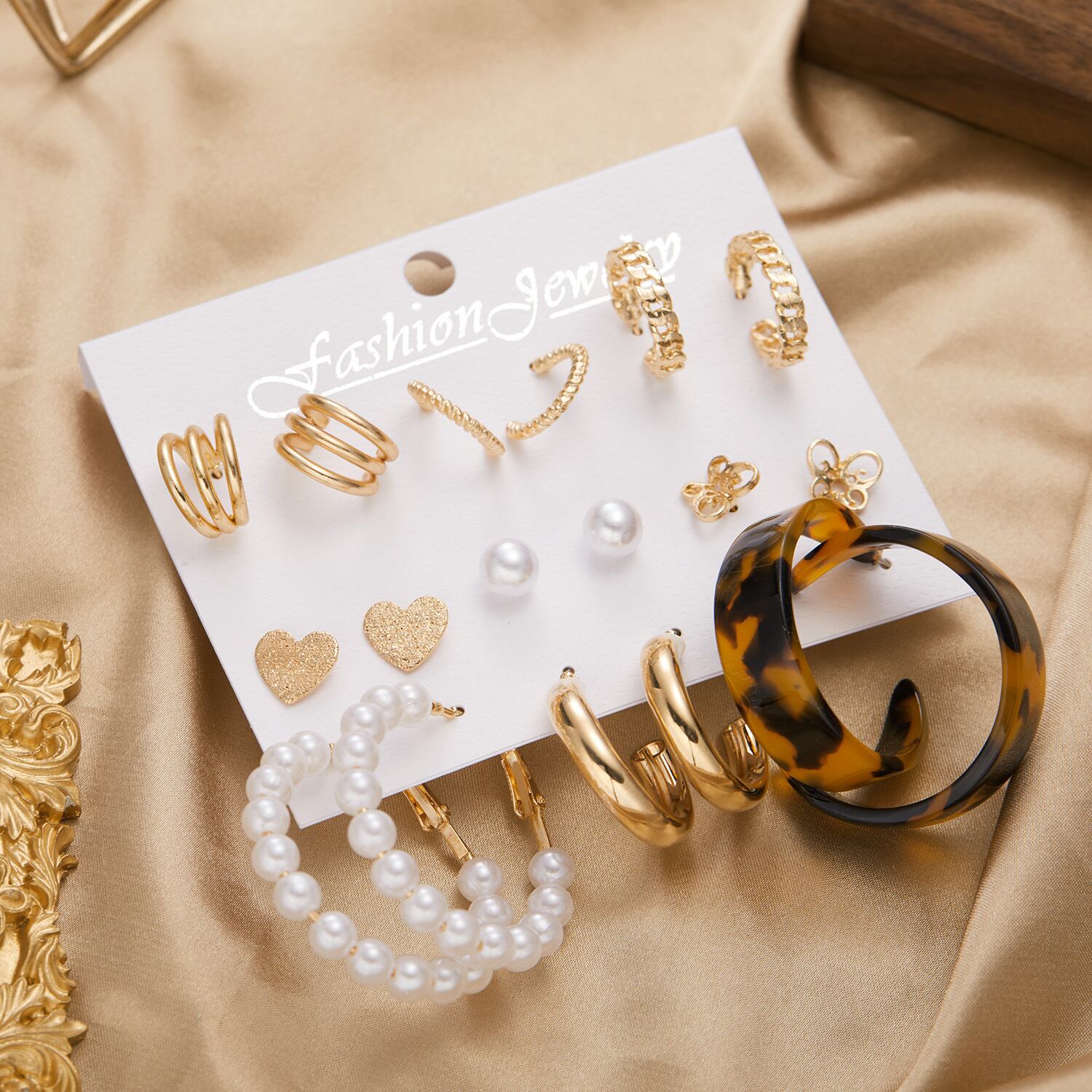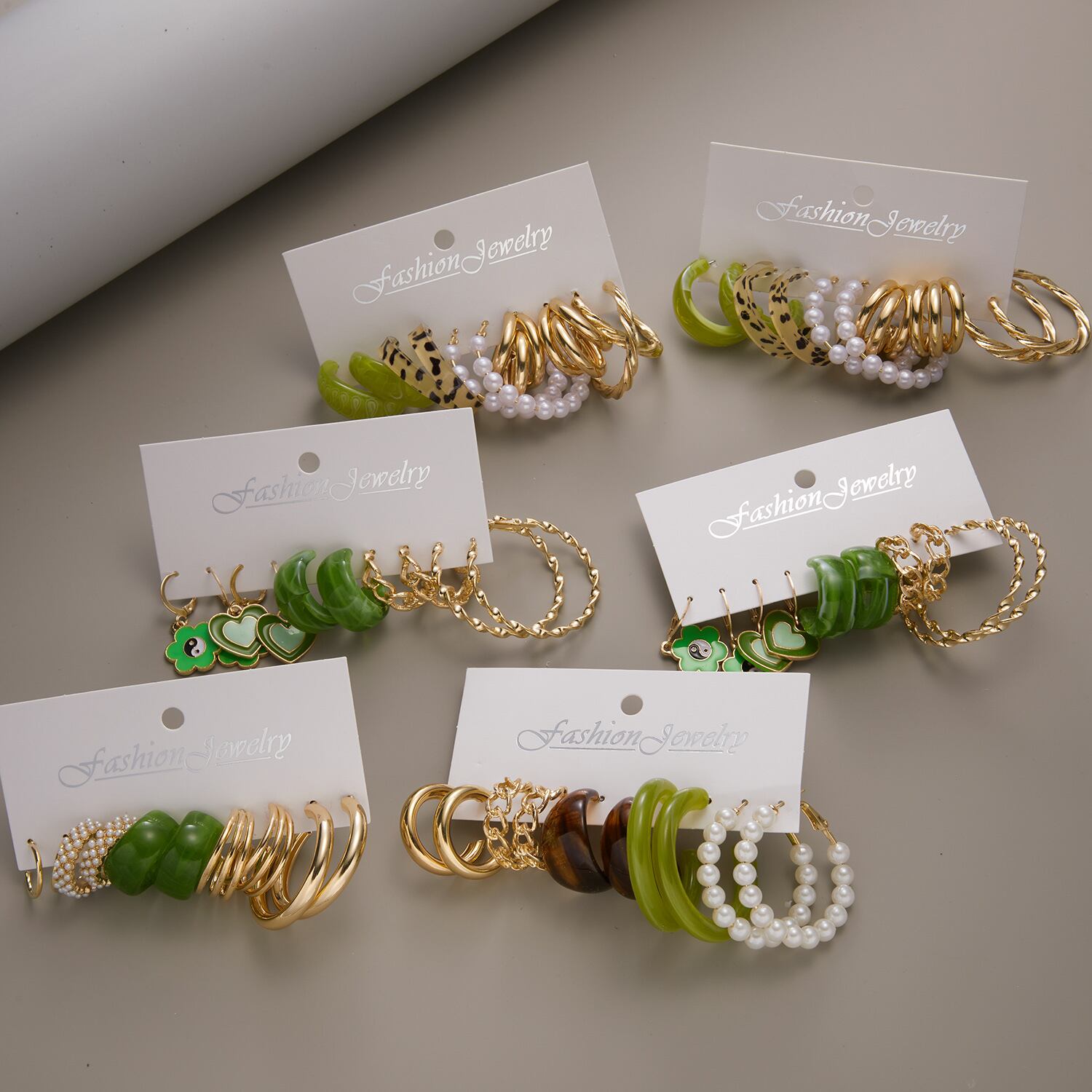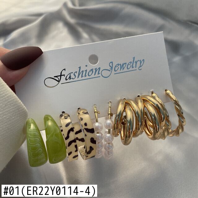 送料無料 アクリルフープピアスセット女性レジンヒョウシミュレートパールピアスジュエリーサマーアクセサリー イヤリング 夏物 真珠 リング 指輪 人工 アクセサリー AE888823179701608