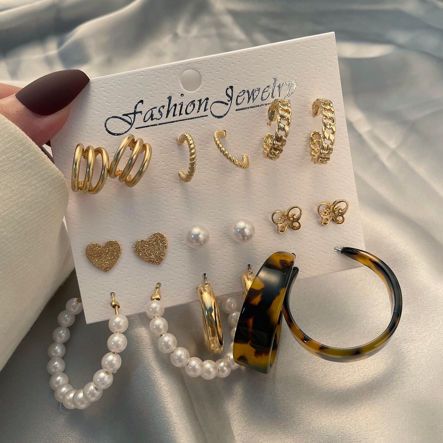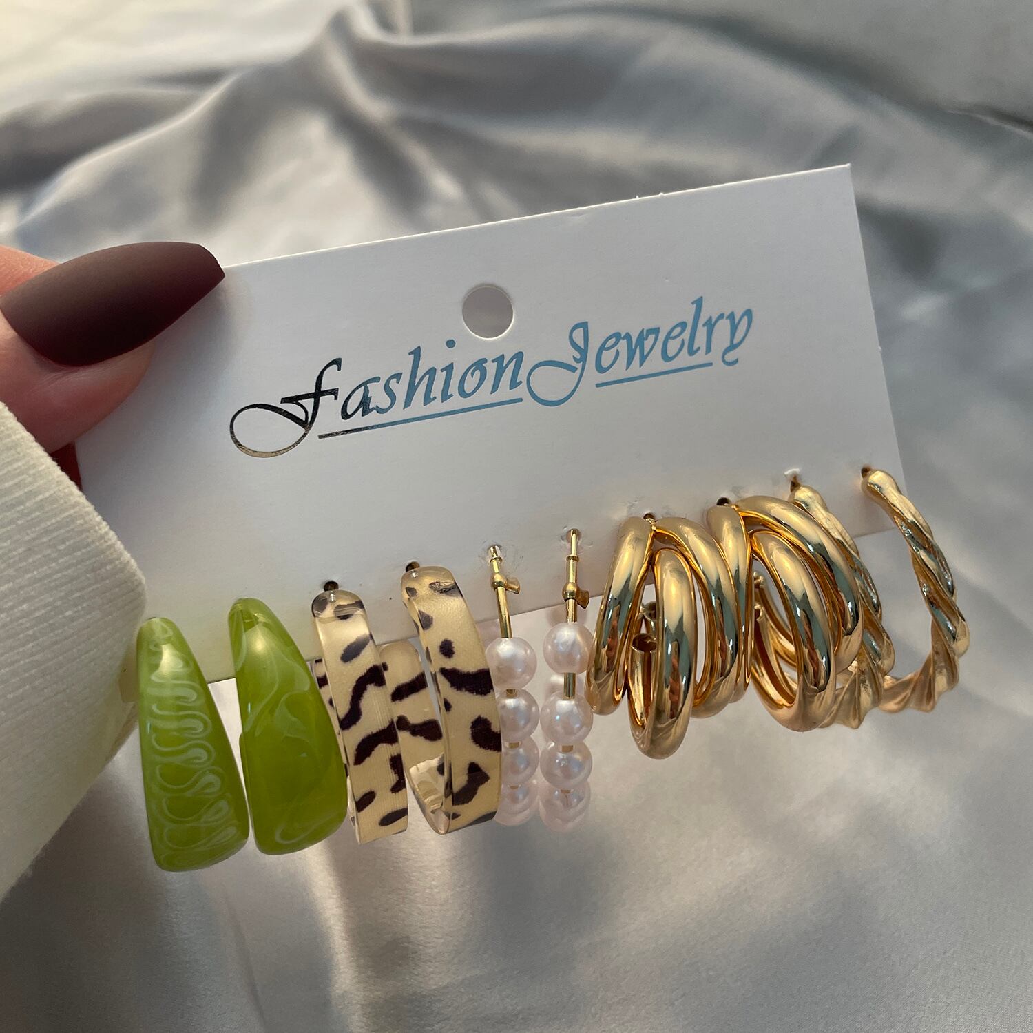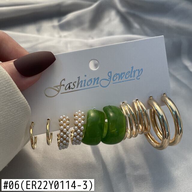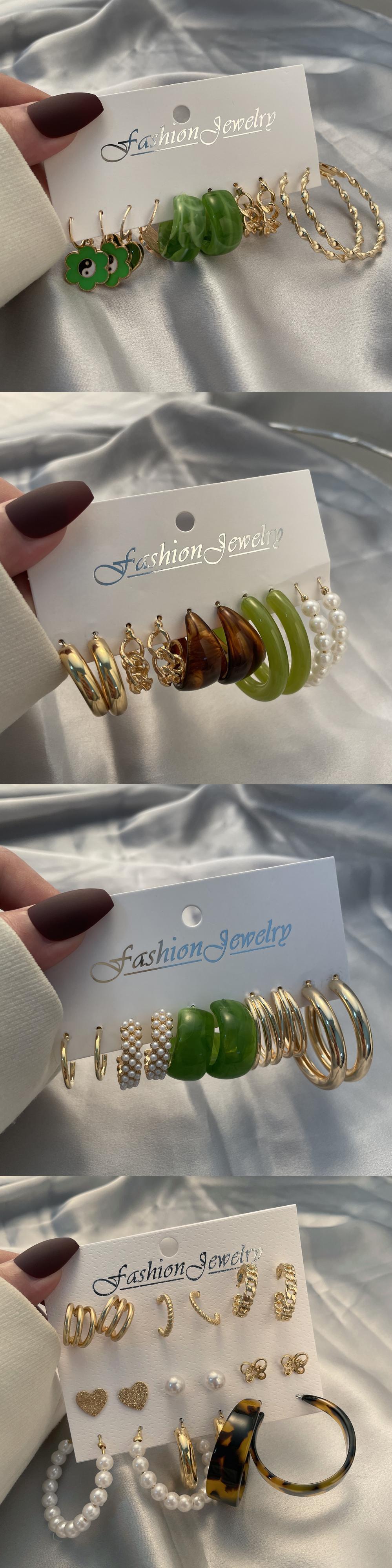 送料無料 アクリルフープピアスセット女性レジンヒョウシミュレートパールピアスジュエリーサマーアクセサリー イヤリング 夏物 真珠 リング 指輪 人工 アクセサリー AE888823179701608