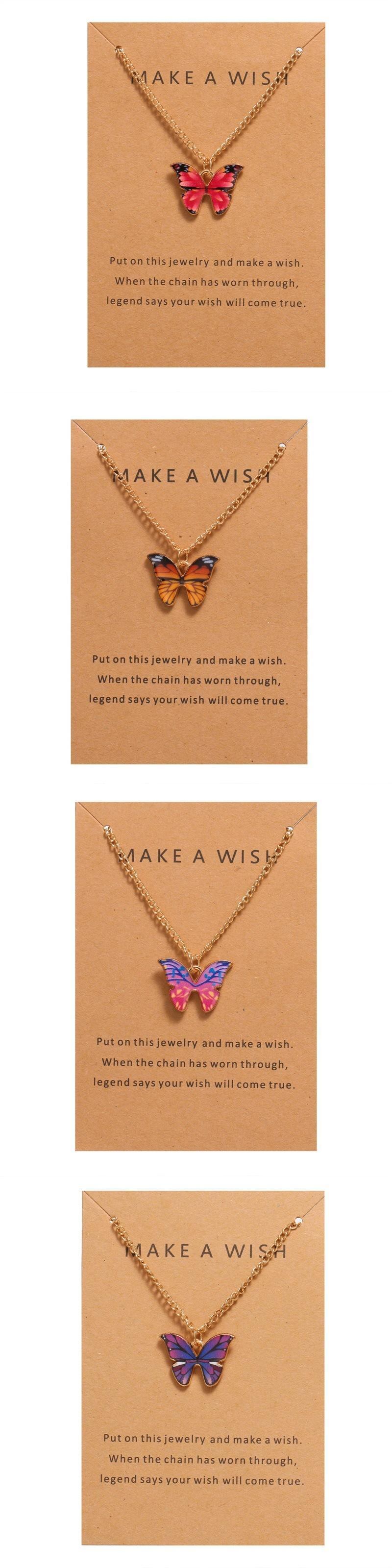 送料無料 かわいい蝶のペンダントネックレス女性ロングチェーンカラフルなペイントオイルアニマルネックレスミニマリストジュエリー レース 大人ガーリー スウィート キュート カジュアル アクセサリー AE888899843183253