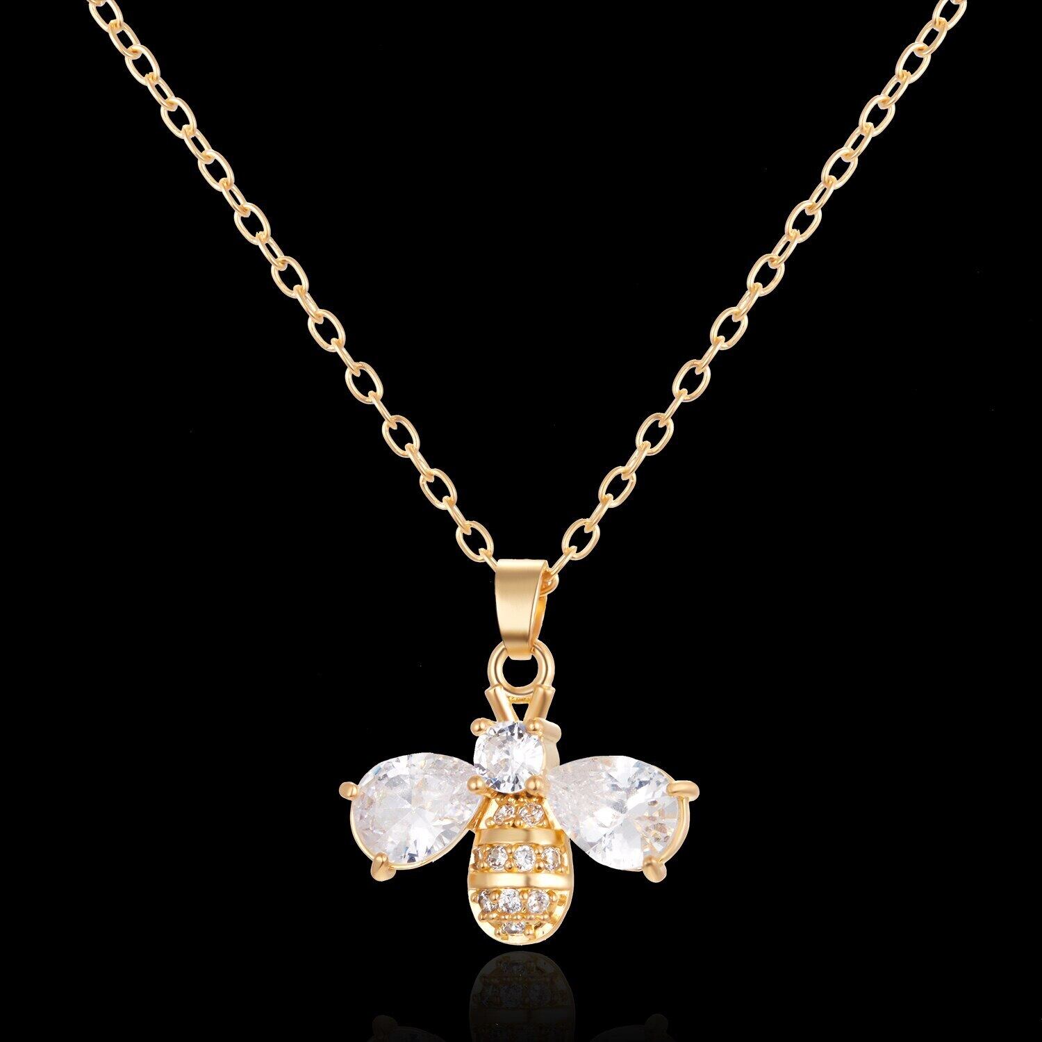 送料無料 気質キュービックジルコニア昆虫蜂ショートネックレス女性繊細な動物クリスタル鎖骨チェーンガールパーティージュエリー レース 風信子石 アクセサリー AE888816607711487