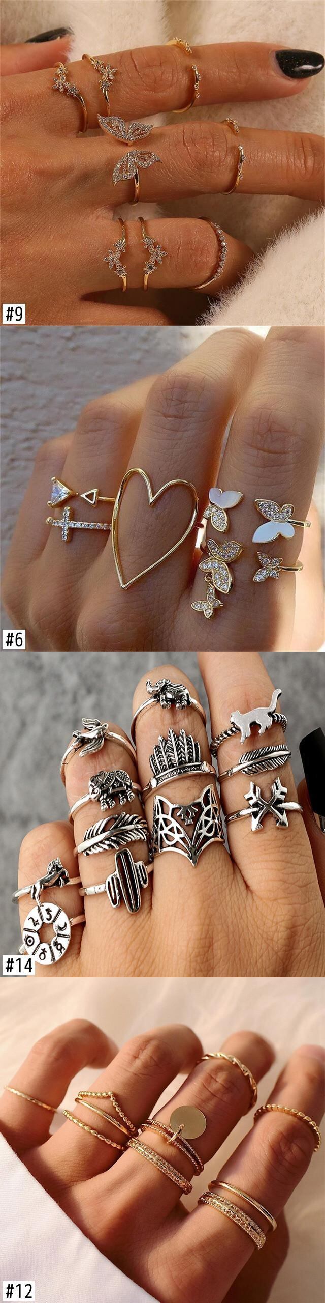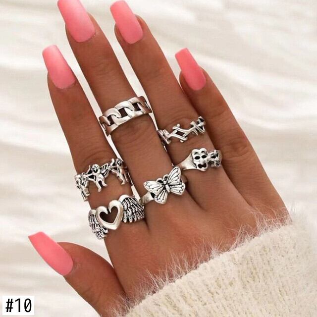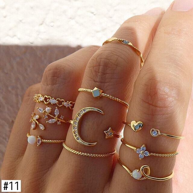 送料無料 ヴィンテージクリスタルバタフライムーンフラワーリングセット女性シンプルな葉幾何学的なナックル指輪パーティージュエリー フラワーデザイン ビンテージ アクセサリー AE888849231975767