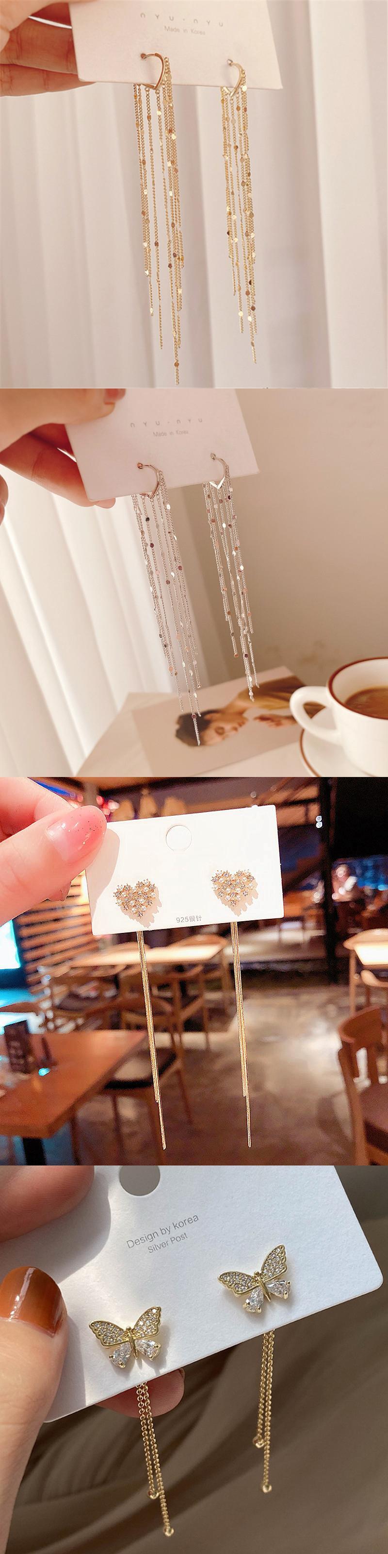 送料無料 女性ロングテルイヤリングスウィートバタフライラインストーンイヤリング幾何学的なハンギングイヤリングジュエリー2021 大人ガーリー キュート カジュアル 指輪 アクセサリー AE888848040278223