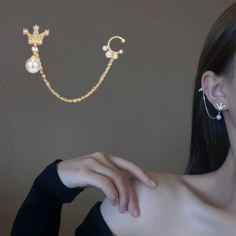 送料無料 クラウンロングテルイヤリング女性クリエイティブシンプルボウハートイミテーションパールチェーンピアスピアスパーティージュエリーギフト リボン 真珠 指輪 アクセサリー AE888828689919934