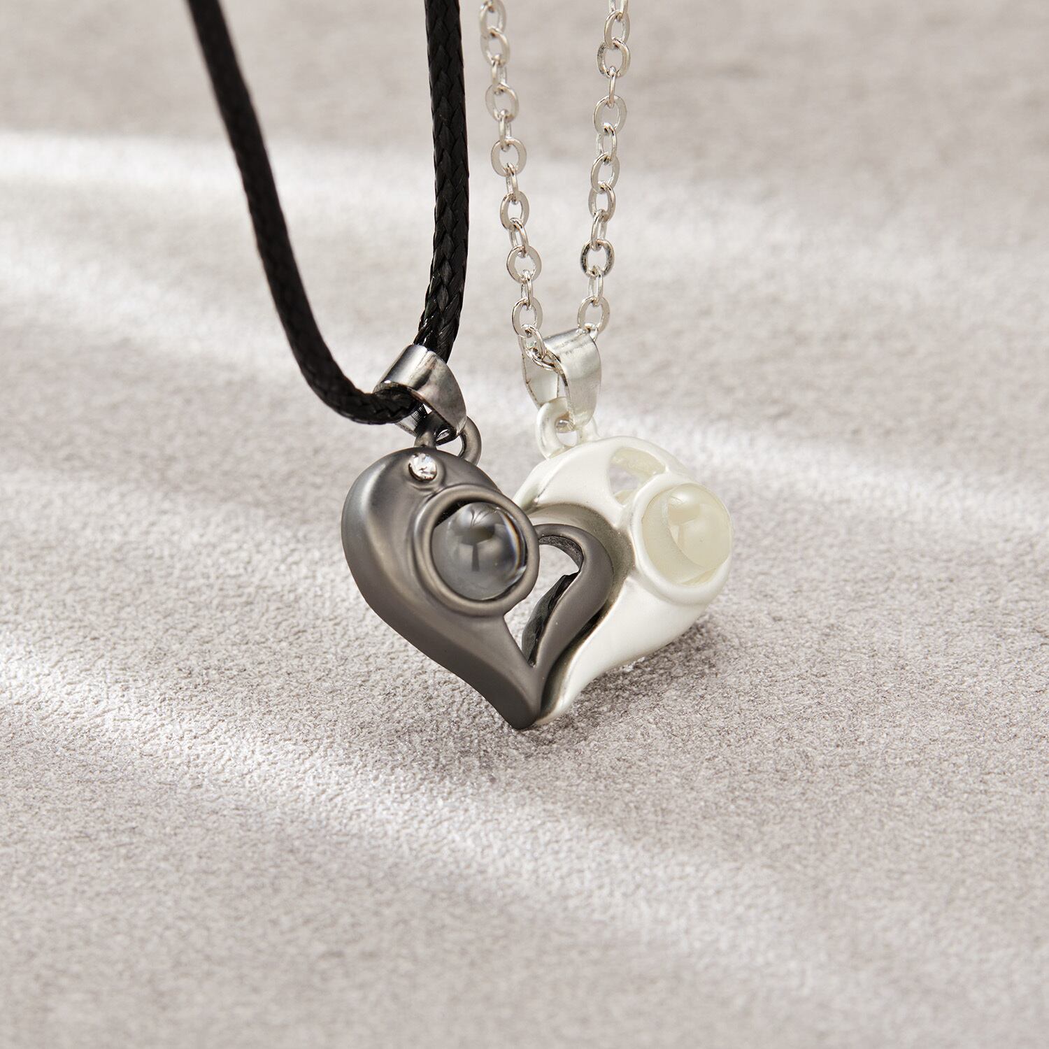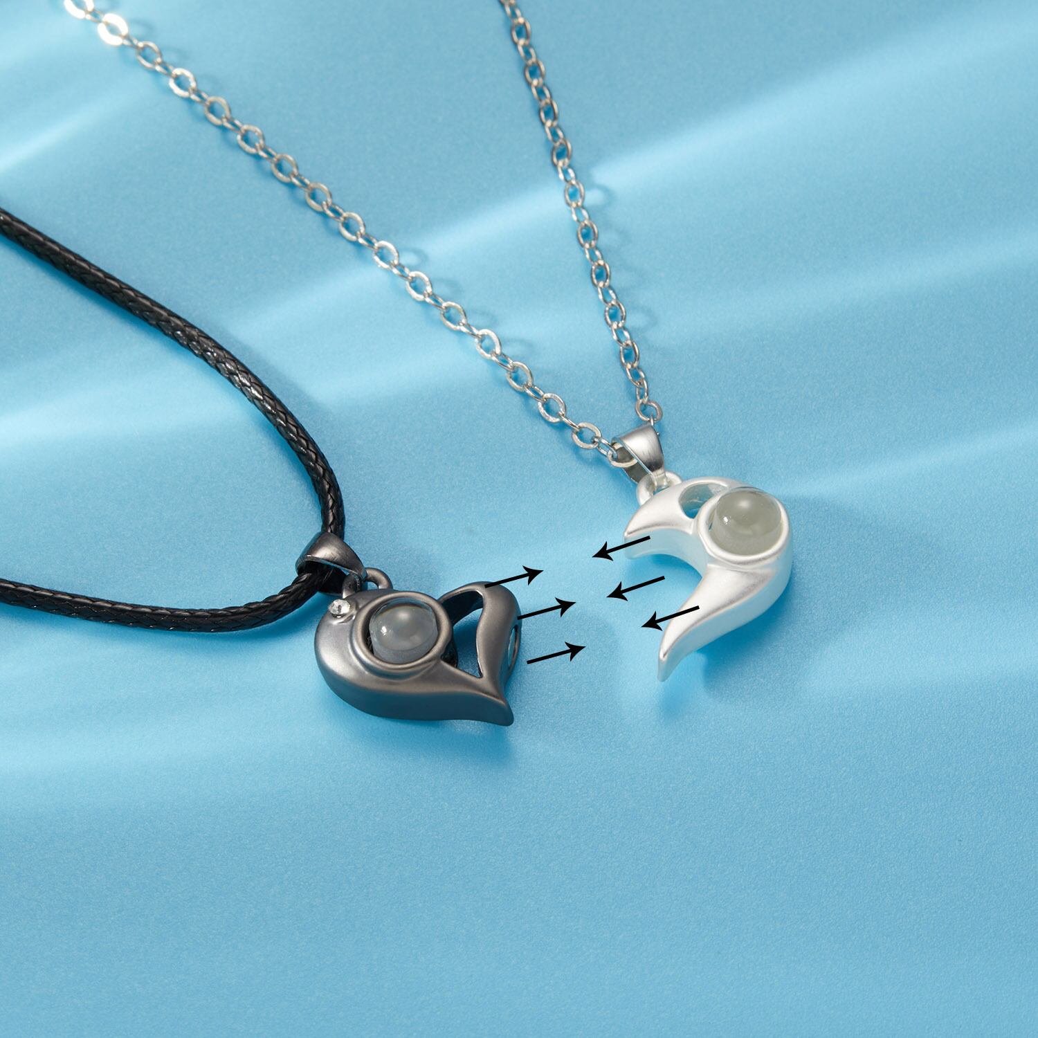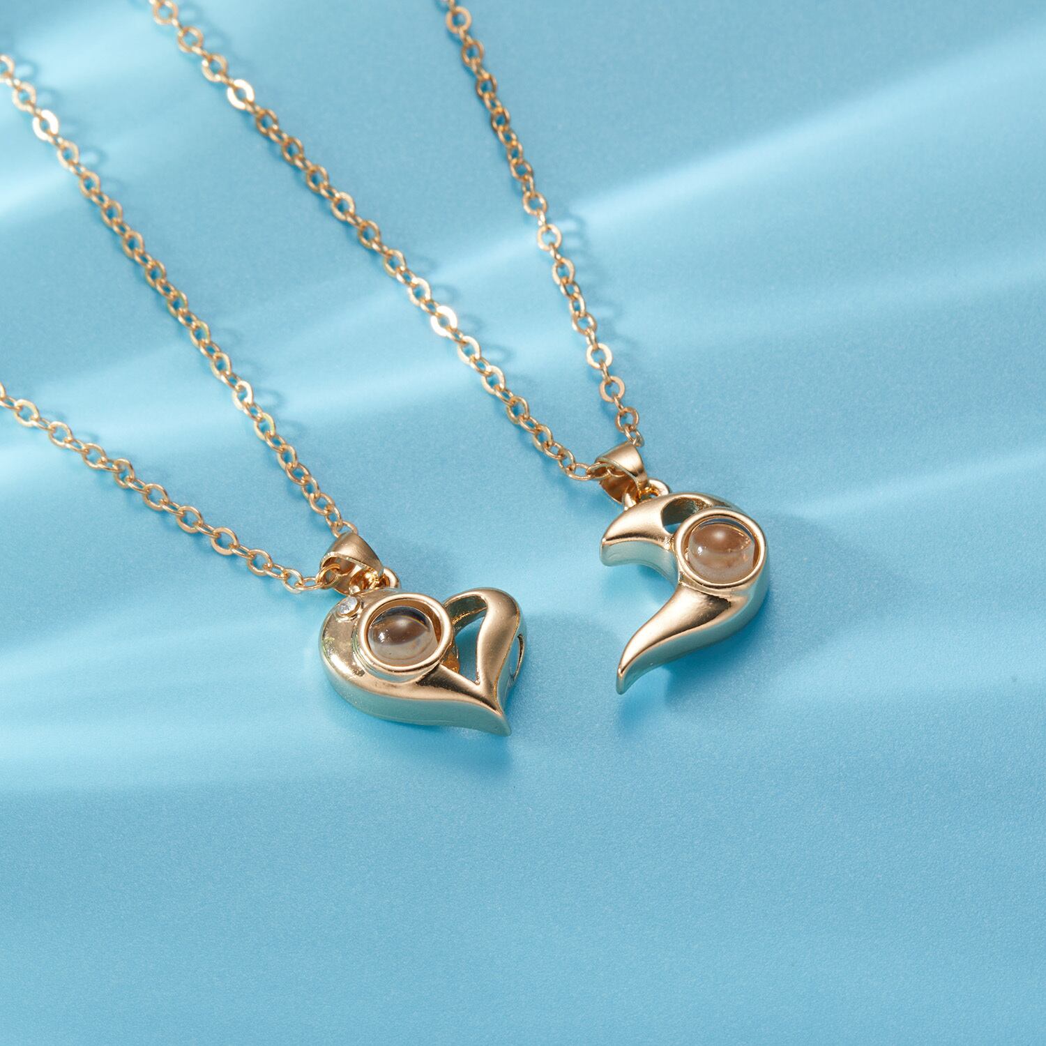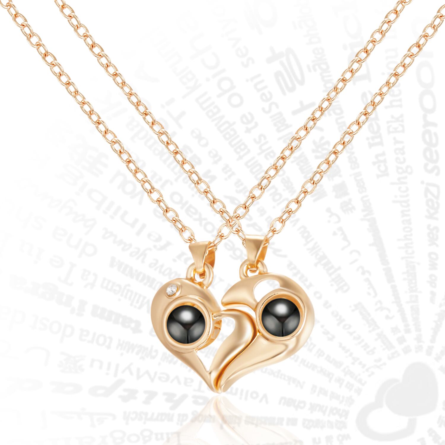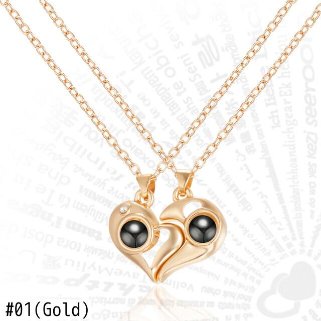 送料無料 2ピースマグネティックハートカップルネックレス100言語ILoveYouプロジェクションペンダントネックレス女性男性パーソナリティジュエリーギフト レース アクセサリー AE888850684909742