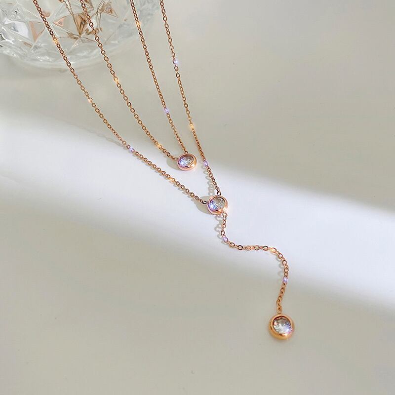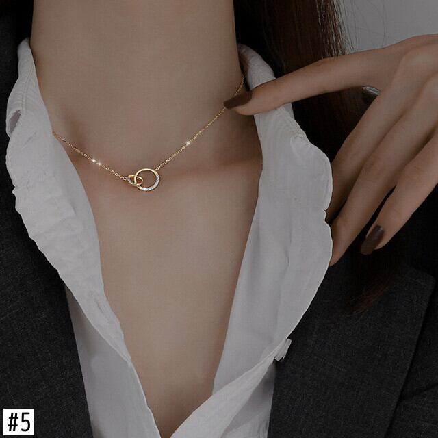 送料無料 トレンドシャイニークリスタルジルコンネックレスローズゴールドダブルレイヤーOチェーンネックレスレディースギフトサマージュエリーアクセサリー レース 夏物 アクセサリー AE888882394242771
