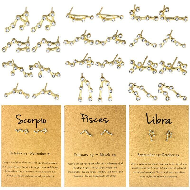 送料無料 12コンステレーションイヤリング女性ゴールドキュービックジルコニア干支サインスタースタッドピアス誕生日友情ジュエリーギフト 指輪 風信子石 アクセサリー AE888891455993926