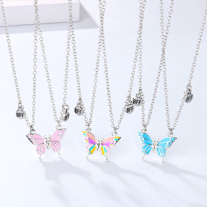 送料無料 1ペア磁気バタフライネックレス鎖骨チェーンBFFこれまでの親友ペンダントネックレス女性の友情ジュエリーギフト レース アクセサリー AE888866262568841