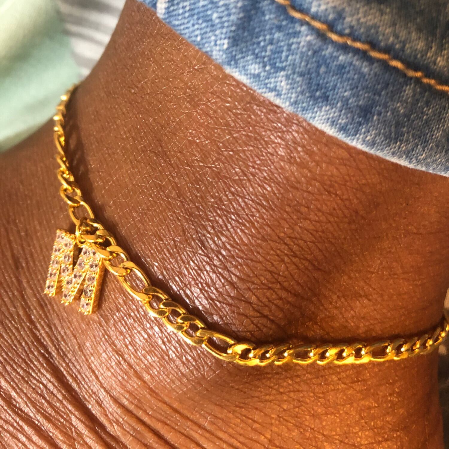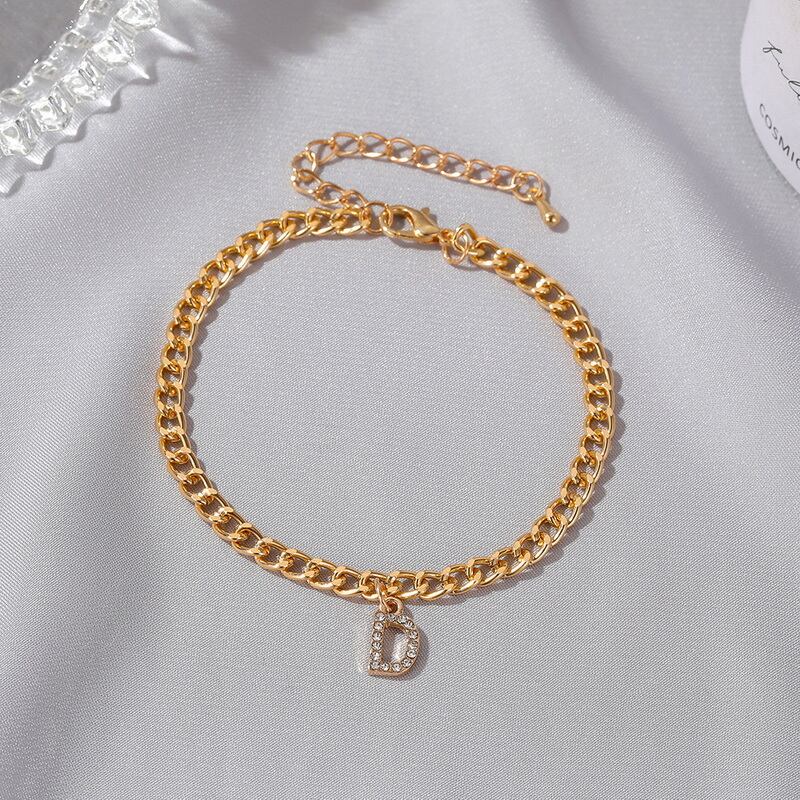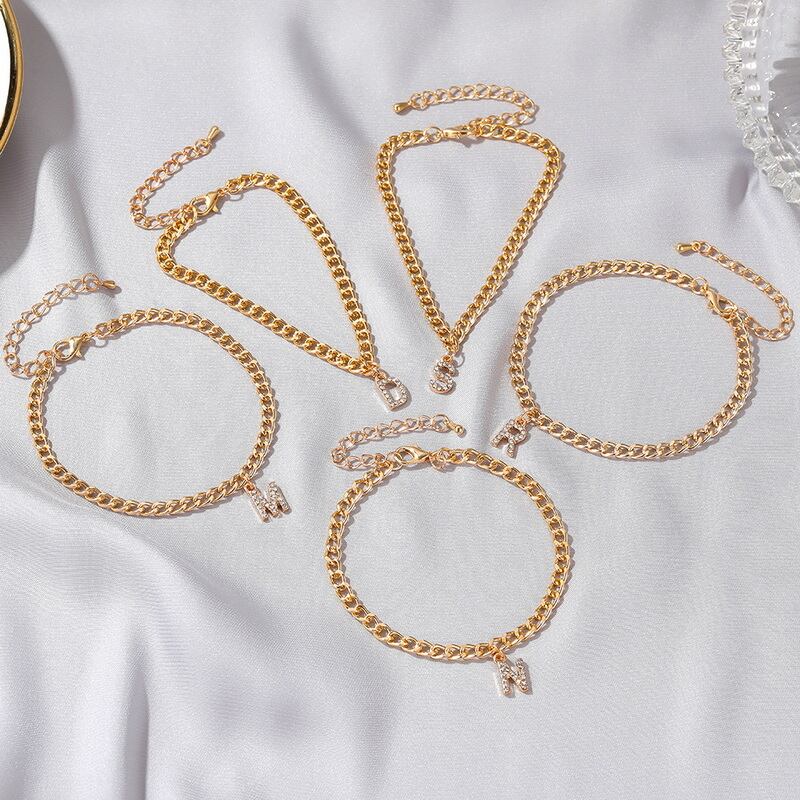 送料無料 小さな頭文字アンクレット女性ラインストーンゴールドカラーアルファベットキューバリンクアンクレットブレスレットジュエリーサマーフットアクセサリー 夏物 アクセサリー AE88883407508397