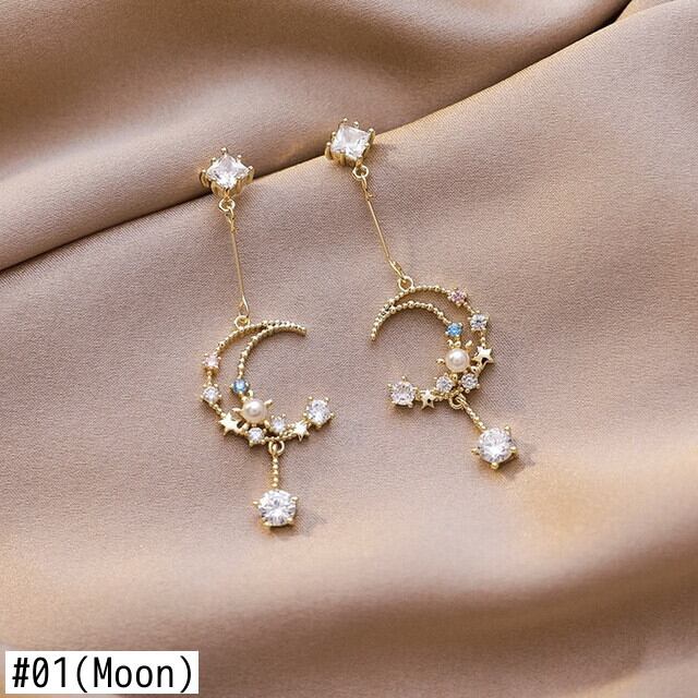 送料無料 2021ムーンスターテルジルコンスタッドピアス女性ラインストーンクリスタルスウィートパーティーウェディングジュエリーアクセサリーギフト イヤリング 大人ガーリー キュート カジュアル リング 指輪 アクセサリー AE888817557173574