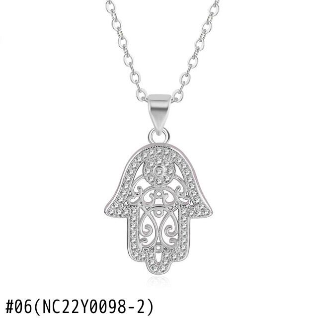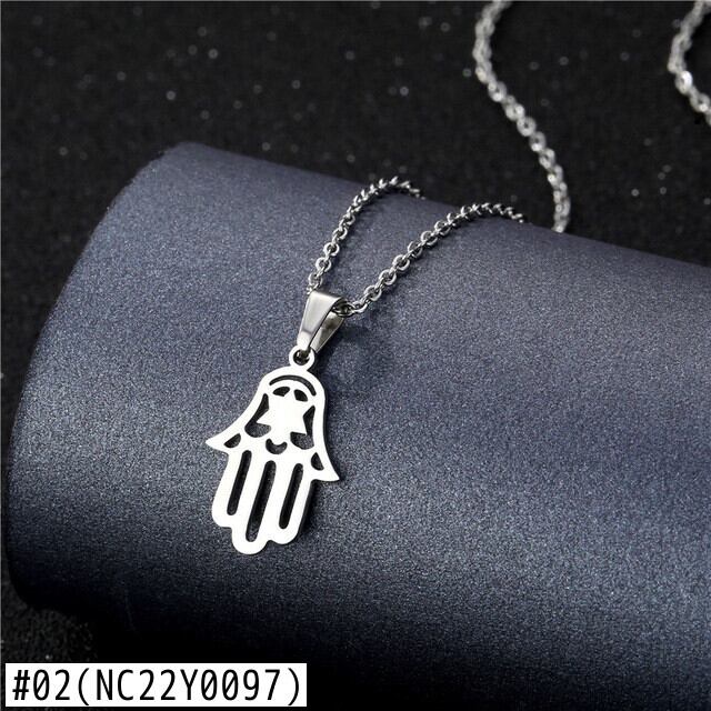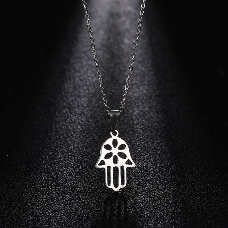 送料無料 ステンレス鋼ハムサペンダントネックレス女性シルバーカラー中空ハンドパームクラビクルチェーンネックレスパーティージュエリー レース 銀 アクセサリー AE888828446567727