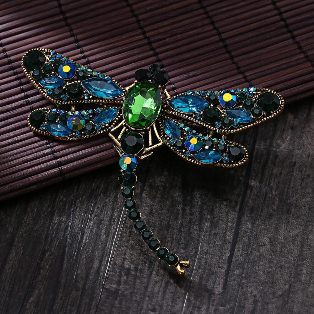 送料無料 1PCラージゴージャスなミックスカラークリスタルトンボ昆虫カラーピンブローチドレスコートアクセサリーかわいいジュエリー 大人ガーリー スウィート キュート カジュアル アクセサリー AE888811552007674