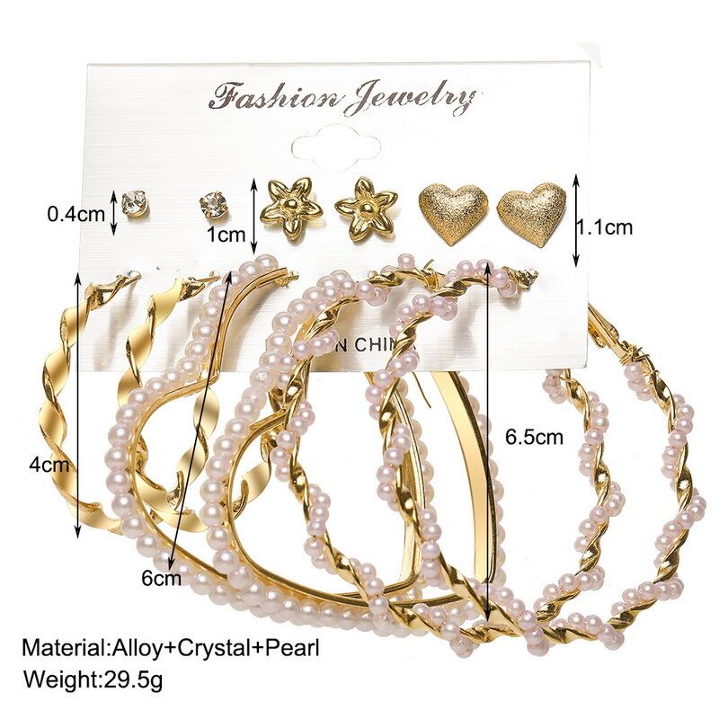 送料無料 トレンディな絶妙なパールピアスセット女性ゴールデンメタルアクリル幾何学的サークルダングルピアスジュエリーアクセサリー イヤリング 真珠 リング 指輪 アクセサリー AE88889259455497
