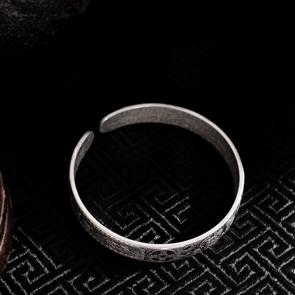 送料無料 貔貅ウェルスラッキーチャームブレスレットメンズレトロシルバーメッキ貔貅縁起風水貔貅マントラオープンバングルジュエリー 銀 アクセサリー AE888882281637620