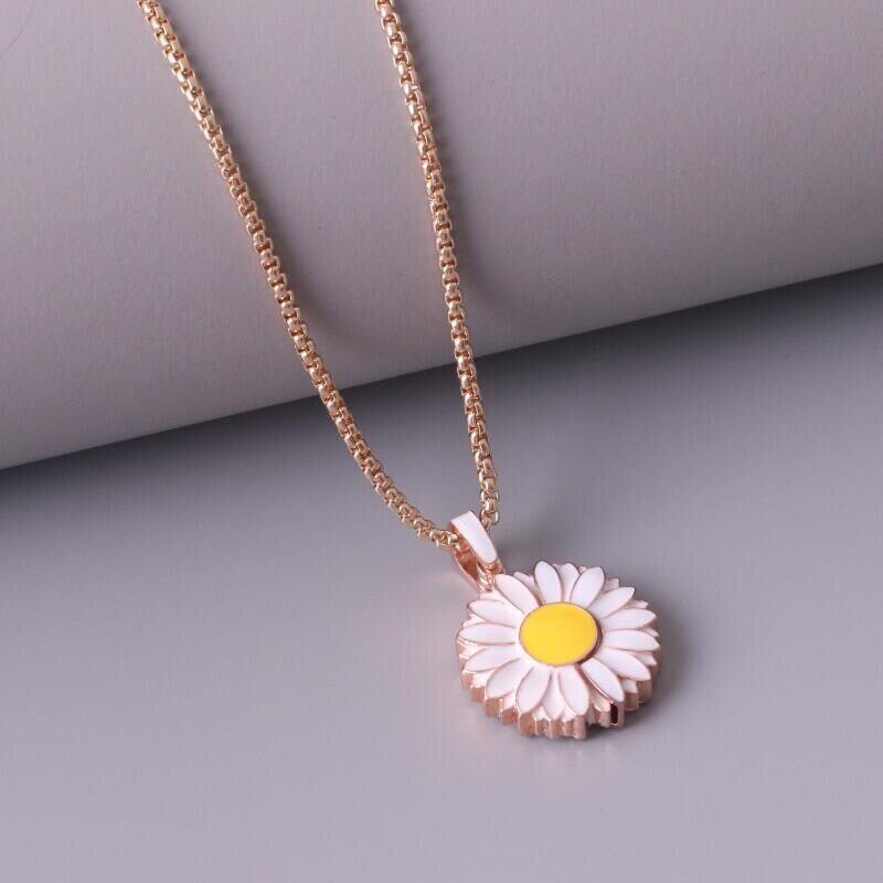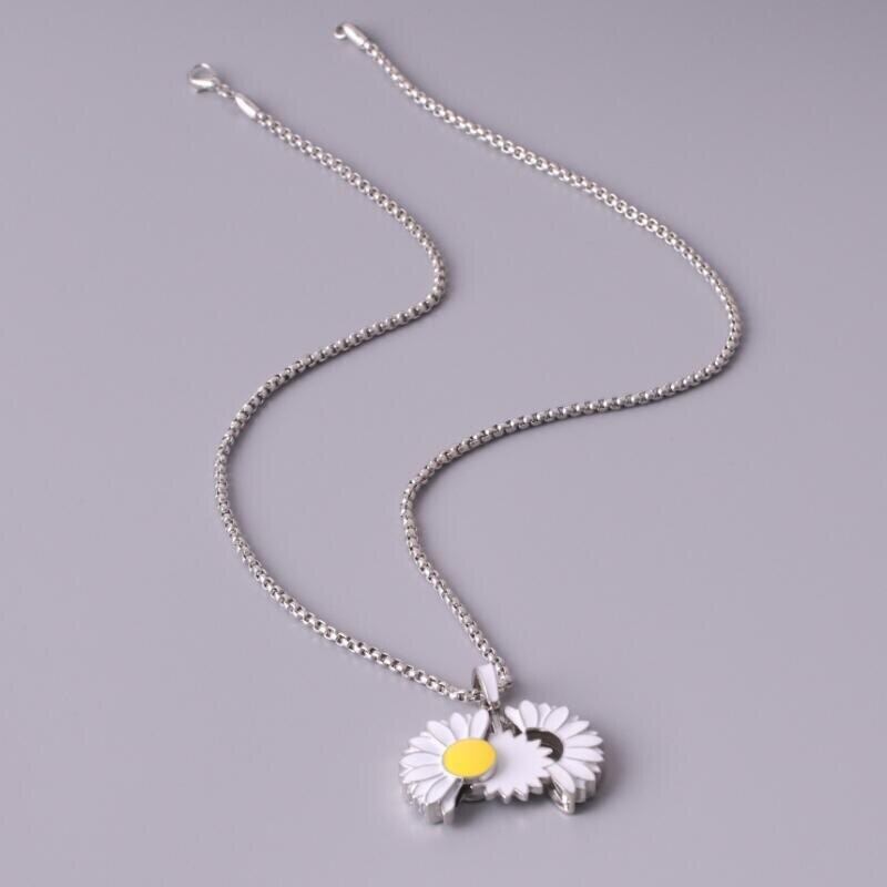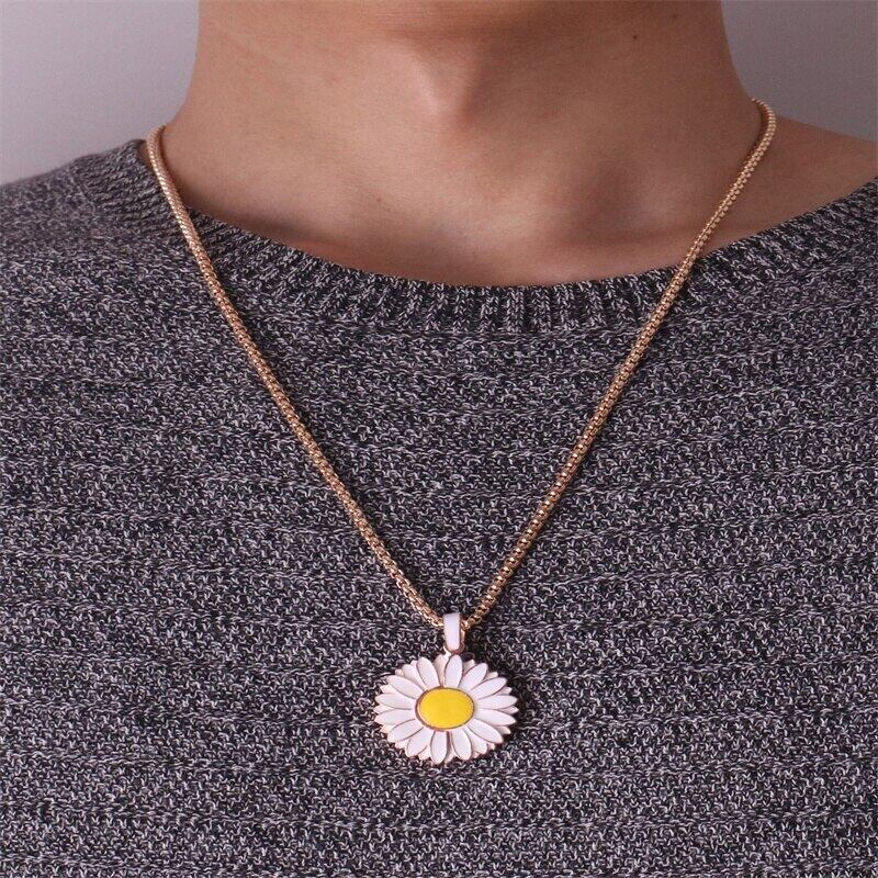 送料無料 チャームヒマワリネックレス女性ステンレススチールロングチェーンフラワーデイジーペンダントネックレスユニセックスジュエリーバースデーギフト レース フラワーデザイン アクセサリー AE88884345436287