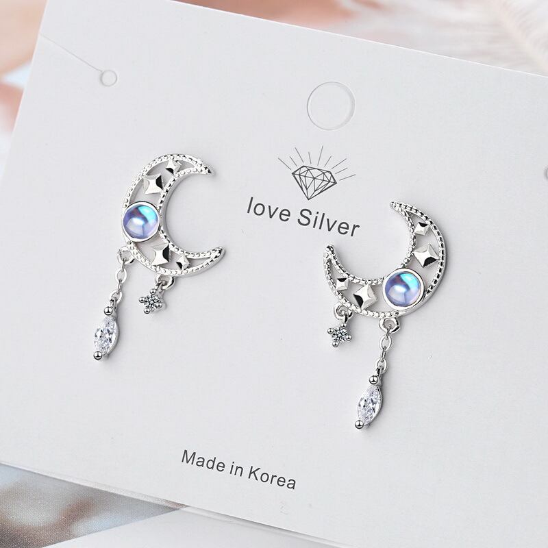 送料無料 RINHOOシルバーカラーホロウムーンジルコンテルスタッドピアスカラフルムーンストーンピアスレディースジュエリー イヤリング リング 指輪 銀 アクセサリー AE888850566822746