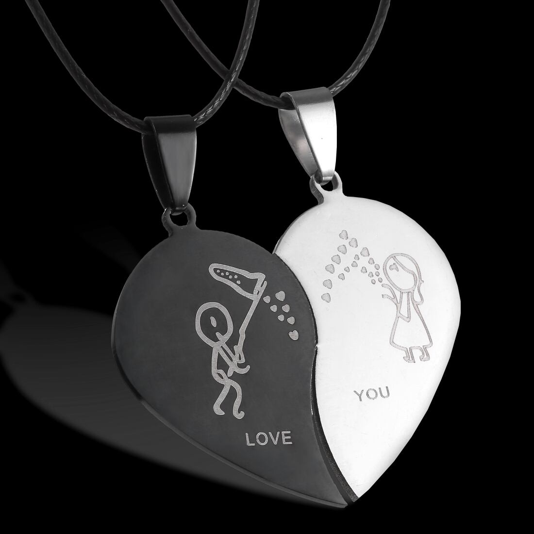 送料無料 愛してる男の子と女の子のスプライスハートステンレス鋼のペンダントネックレスカップルダブルカラー結婚式の婚約パーティージュエリー レース アクセサリー AE888840583718583