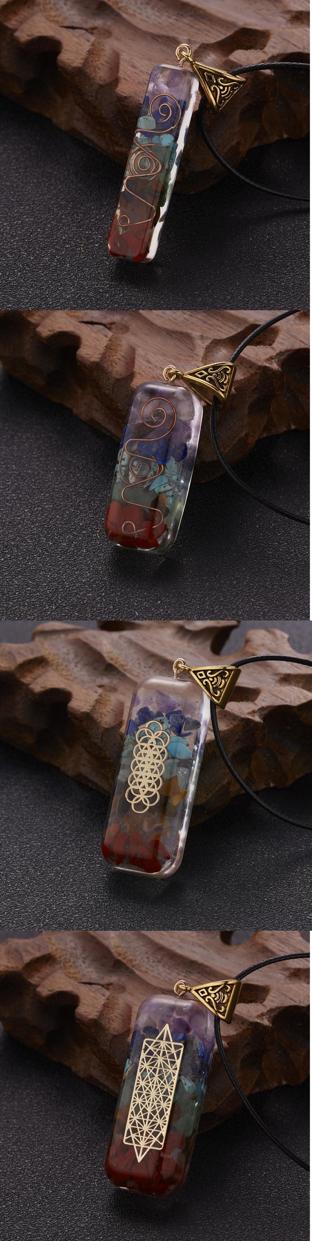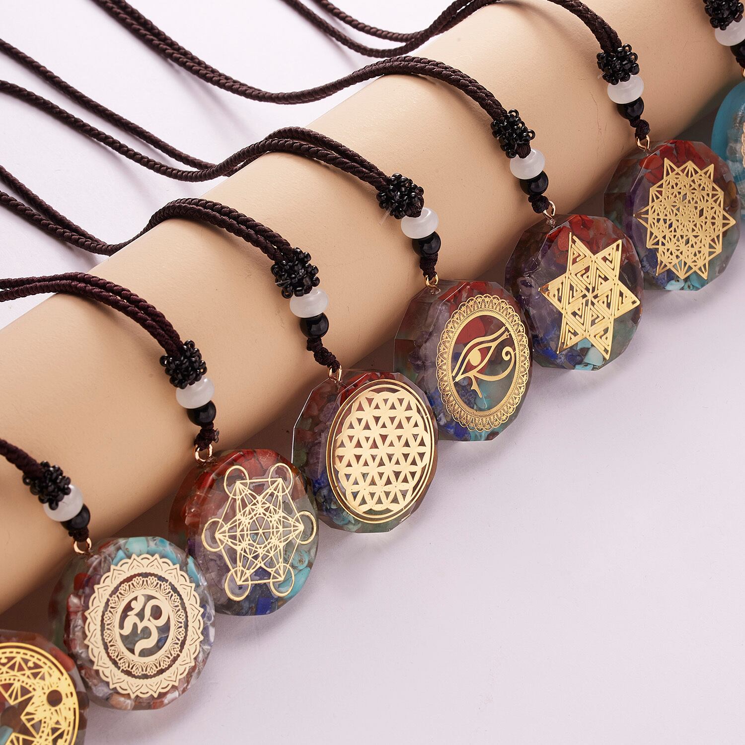 送料無料 チャームカラフルセブンチャクラナチュラル砕石ネックレス女性男性幾何学模様ペンダントロープチェーンネックレスジュエリー レース 天然 アクセサリー AE888867321614685