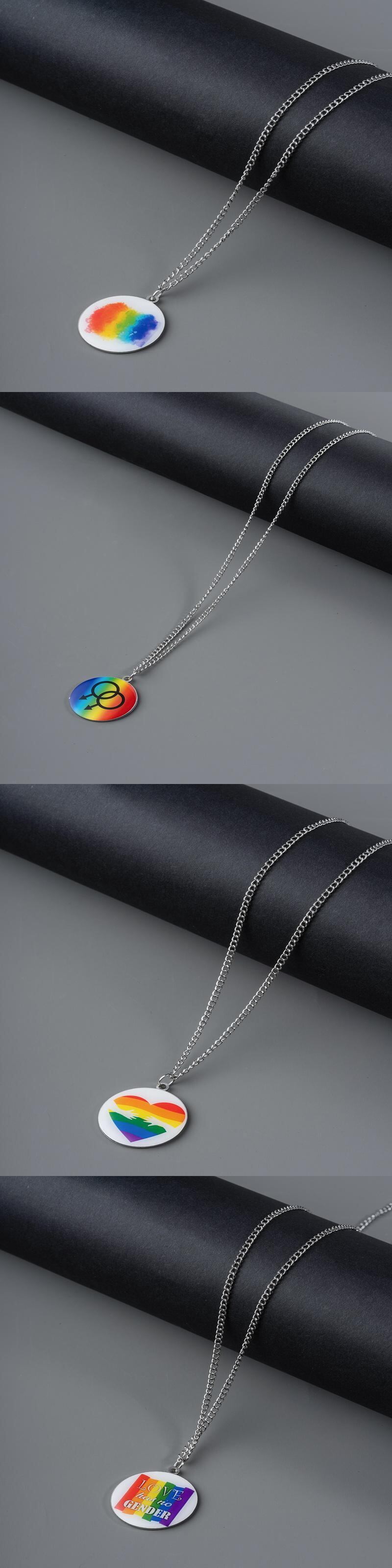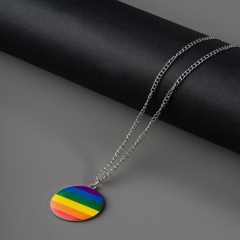 送料無料 レインボーLGBTサークルプレートペンダントネックレスカップルレズビアンゲイプライドフラグラブウィンネックレスベストフレンズラバーズジュエリー レース アクセサリー AE888896508430856