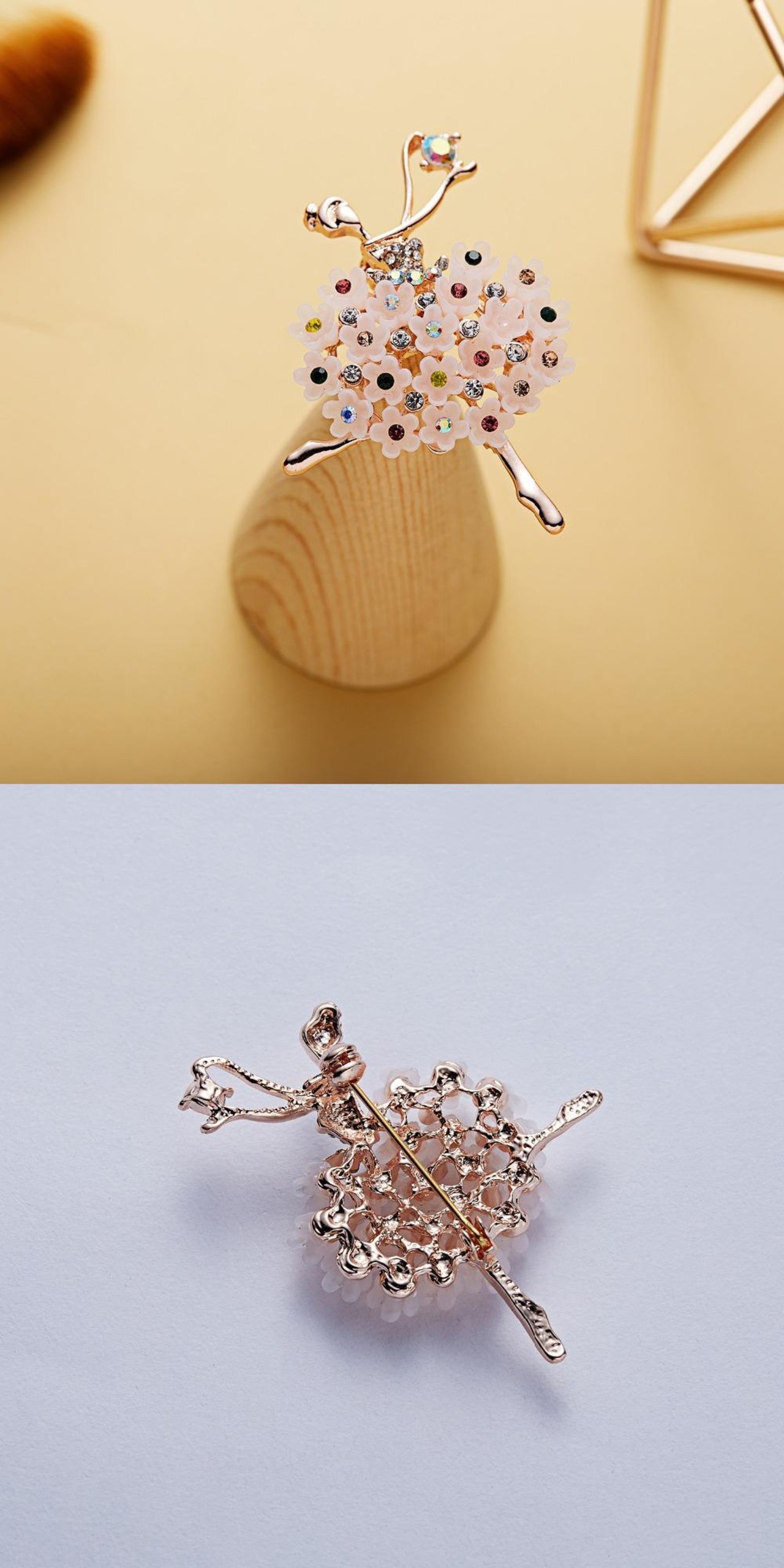 送料無料 RINHOOダンシングガールズブローチラインストーンクリスタルエナメルバレエダンサーブローチ女性ピンウェディングジュエリーギフト アクセサリー AE888882187209263