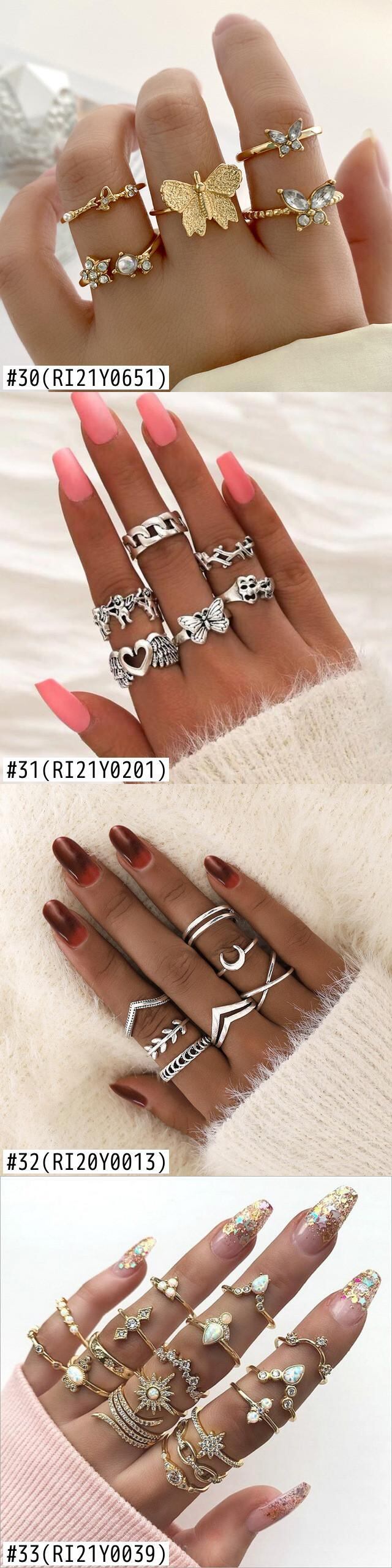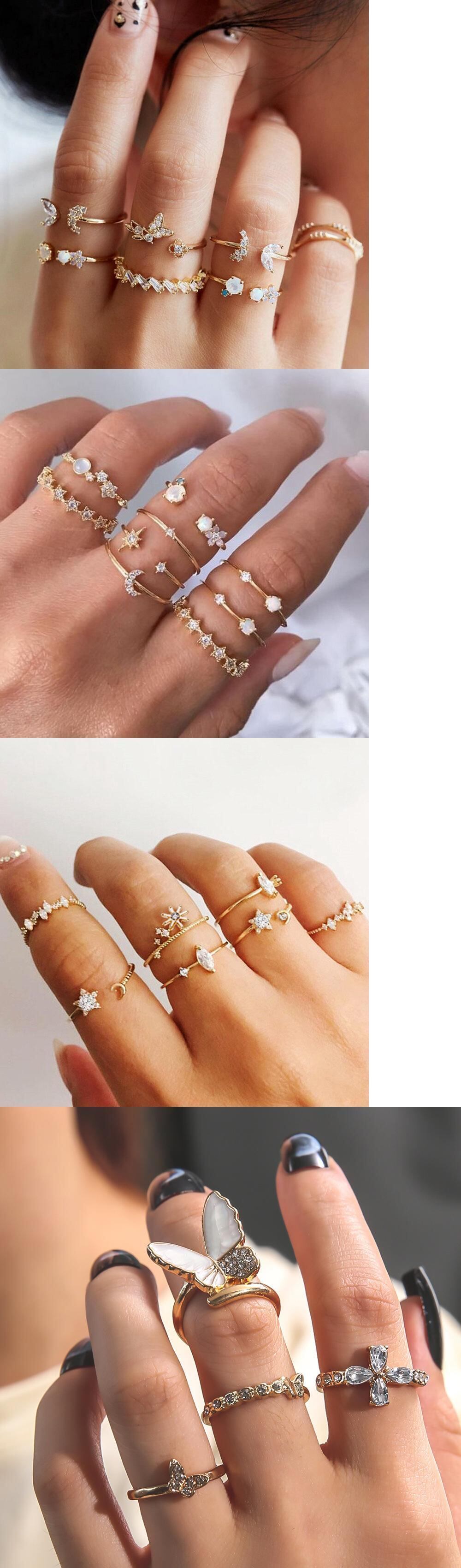 送料無料 ボヘミアンヴィンテージクリスタルスタームーンフラワーリングセット女性自由奔放に生きる蝶ナックルフィンガーリングサマージュエリーギフト 夏物 指輪 フラワーデザイン ビンテージ アクセサリー AE888872881049449