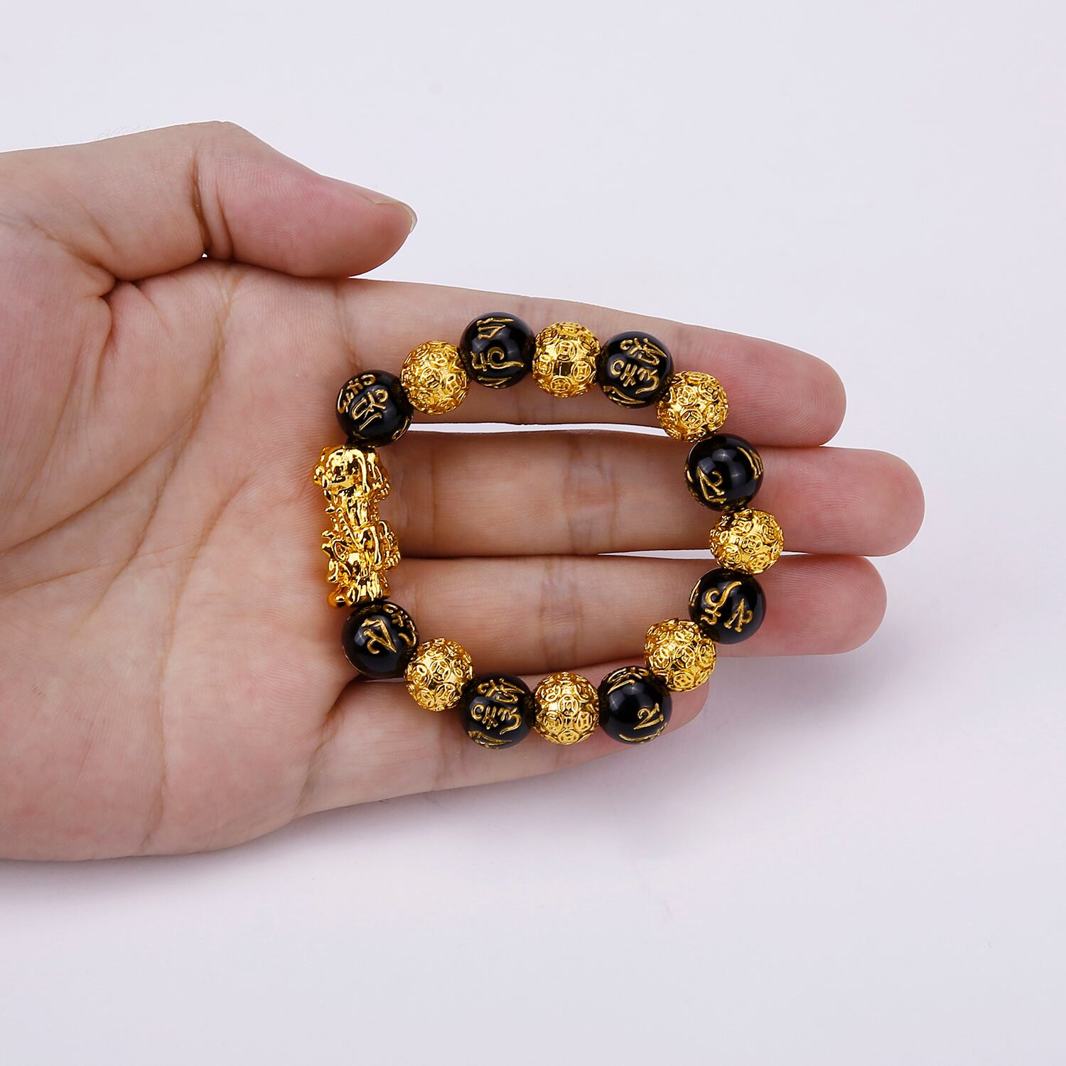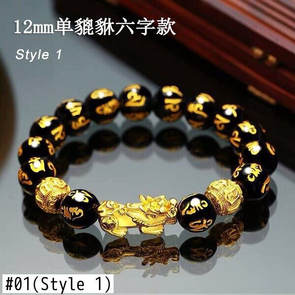 送料無料 風水黒曜石ビーズブレスレット男性女性ユニセックスリストバンドブラックゴールドカラー貔貅富と幸運の女性ブレスレット アクセサリー AE888869257029146
