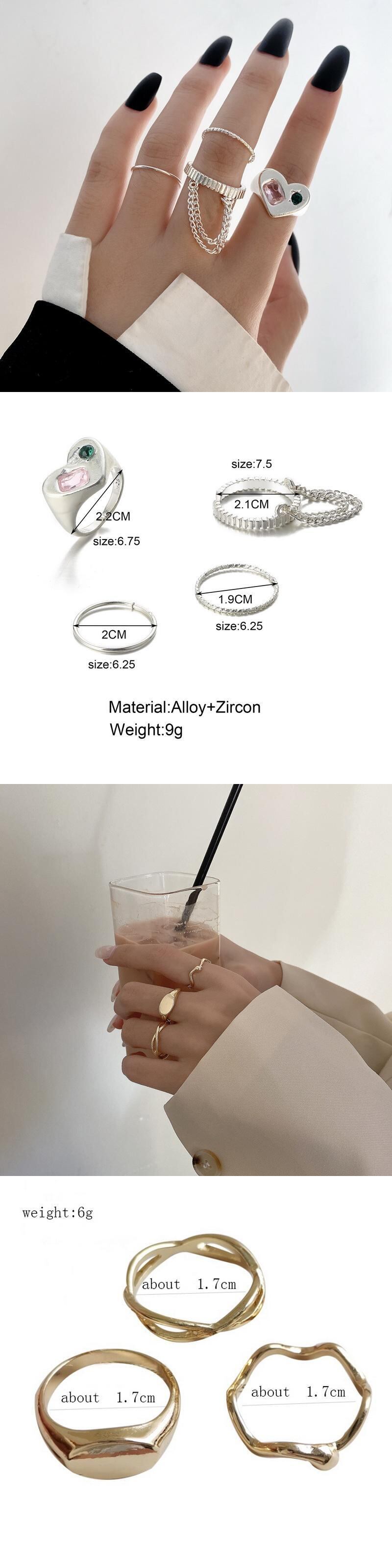 送料無料 メタルサークルリングセットゴールドアロイラブハートリングレディースガールズヴィンテージKpopパンクリングカップルラバーズジュエリーギフト 指輪 ビンテージ アクセサリー AE888842974833989